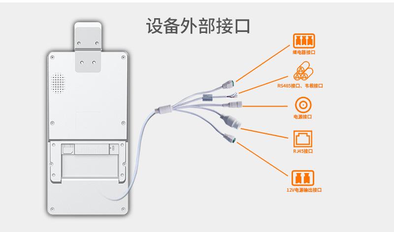 La máquina integrada de reconocimiento facial y medición de temperatura TPS980 personalizada de Telpo tiene una variedad de interfaces, incluyendo interfaz de relé, interfaz RS485/Wiegand, interfaz de alimentación, interfaz RJ45, interfaz de salida de alimentación de 12V, etc.
