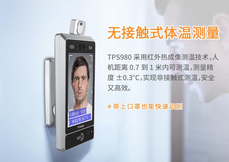 El terminal de medición de temperatura por reconocimiento facial TPS980 de Telpo Intelligent Hardware tiene tecnología externa de medición de temperatura por imagen térmica infrarroja y detección de vivacidad binocular, que puede medir la temperatura con precisión incluso con mascarilla, ayudando a las empresas a reanudar la producción y el trabajo.