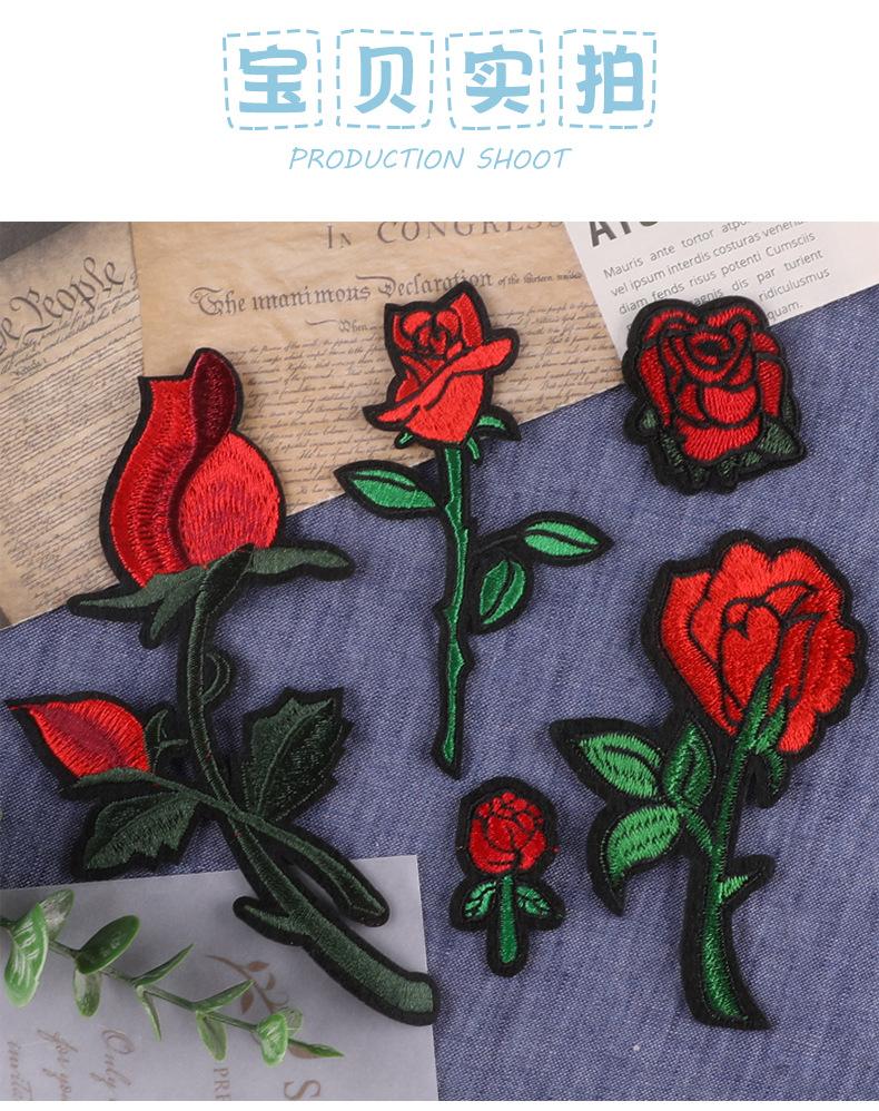 Etiqueta de bordado por computadora de fresa, flor rosa, accesorios de ropa Zhang Zai, decoración de ropa y sombreros, parches adhesivos de tela bordados DIY