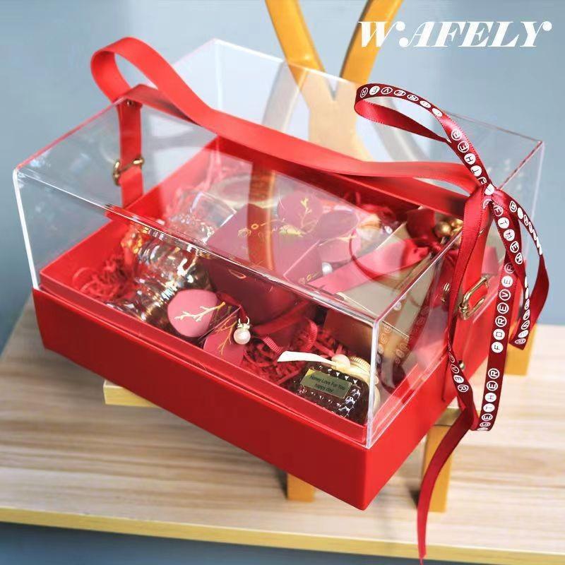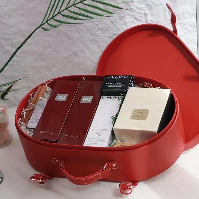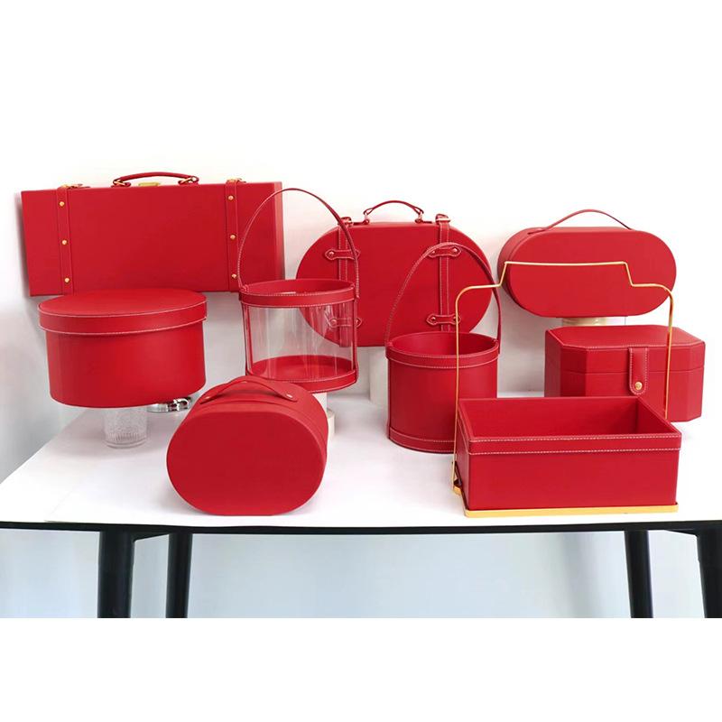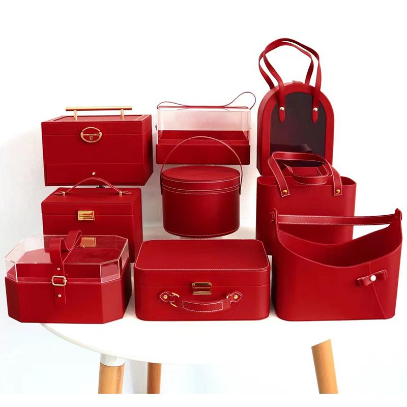 En stock, embalaje de regalo de cuero para negocios, caja vacía, creativa, para dama de honor de boda, serie roja, caja de dulces para regalo de boda
