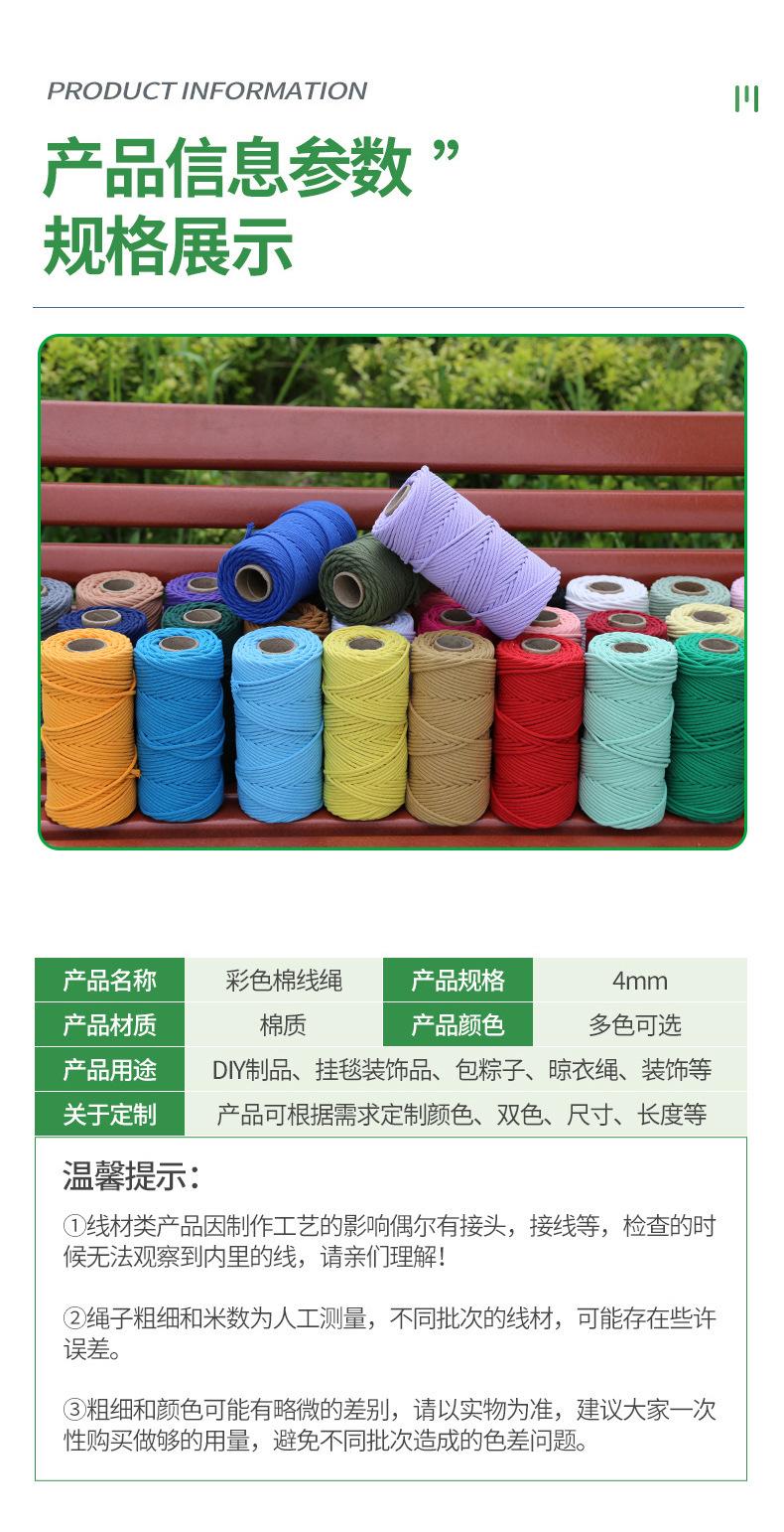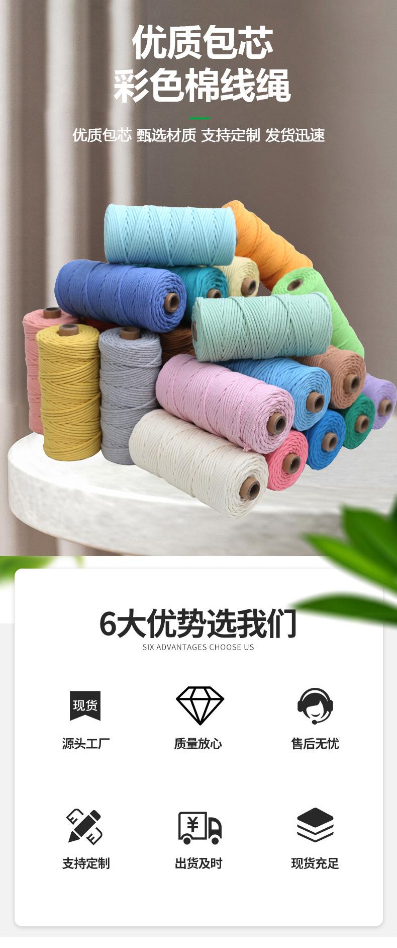 Cuerda de Algodón con Núcleo de Color de 4 mm DIY Hecha a Mano Cuerda Trenzada Cuerda para Tapiz Lote de Cuerda Cuerda Decorativa Cuerda para Bolsa de Red Cuerda de Algodón con Núcleo