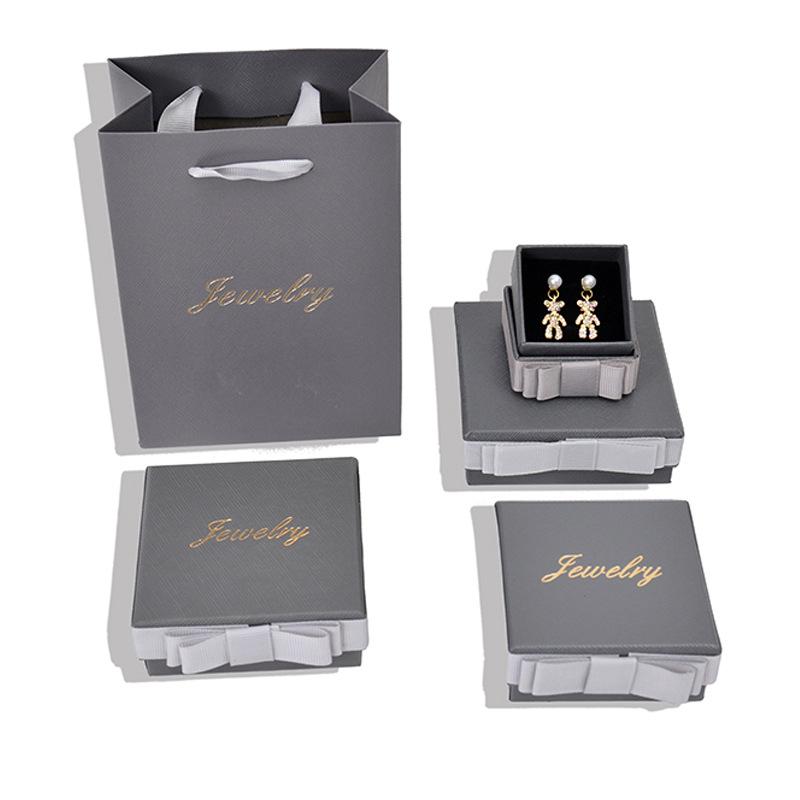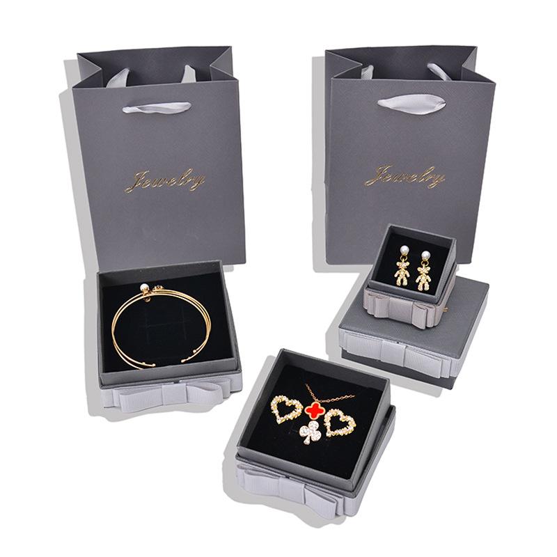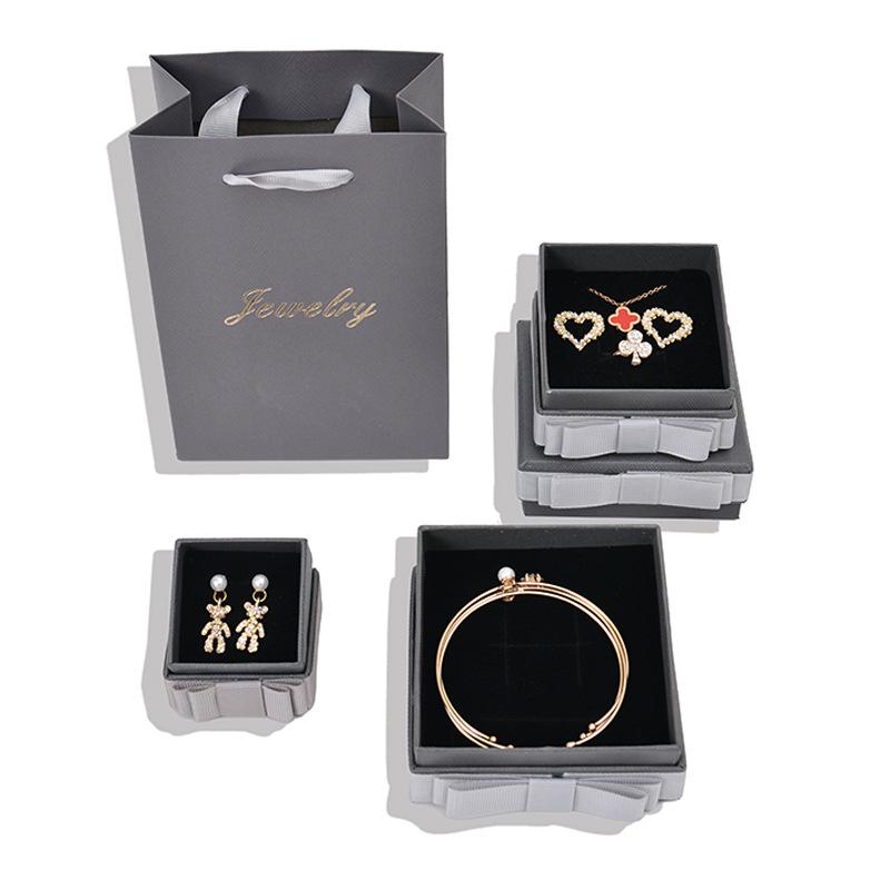 Elegante joyero con lazo a cuadros gris flotante transfronterizo, tapa para anillo, collar, caja de embalaje, caja de exhibición para traje y pulsera