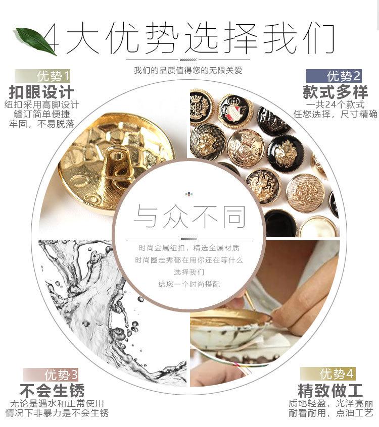 Venta al por mayor de fábrica botón de metal botón botón hebilla de abrigo de lana abrigo cortavientos traje casual suéter hebilla