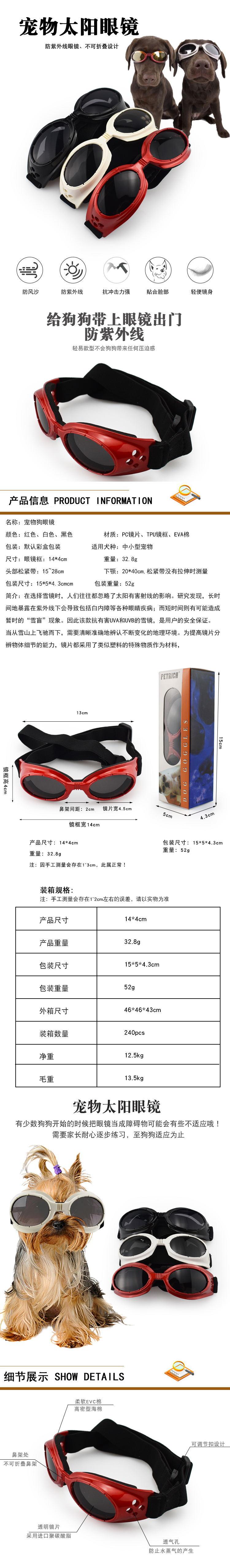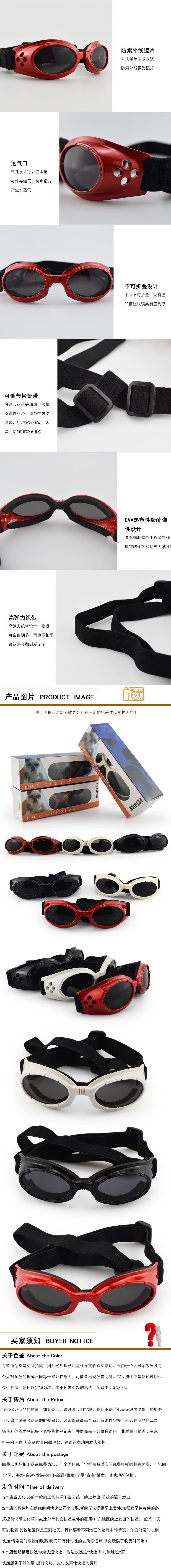 Material: La lente está hecha de policarbonato importado (POLICARBONATO), que puede resistir la radiación solar UV400, la luz visible ultravioleta y el infrarrojo para proteger los ojos de su mascota.