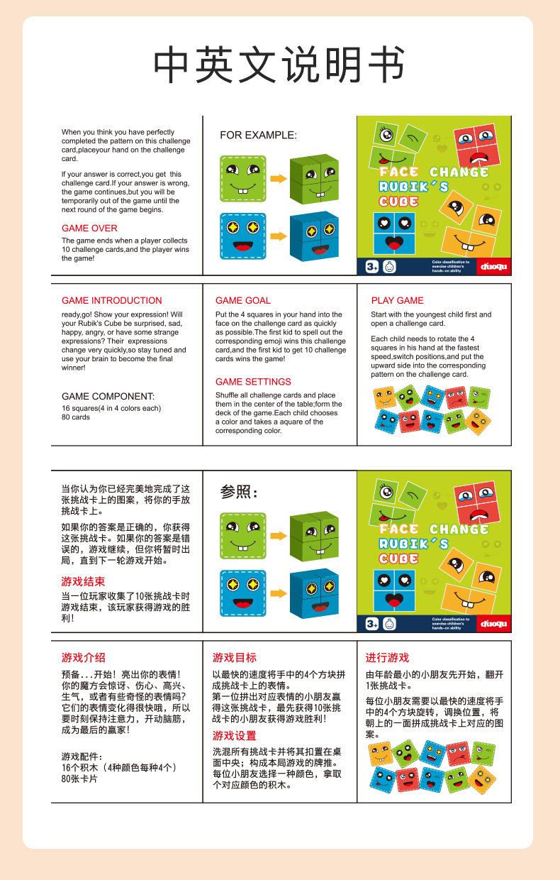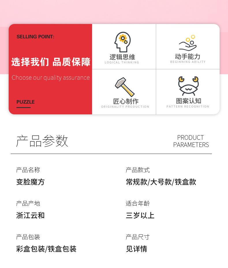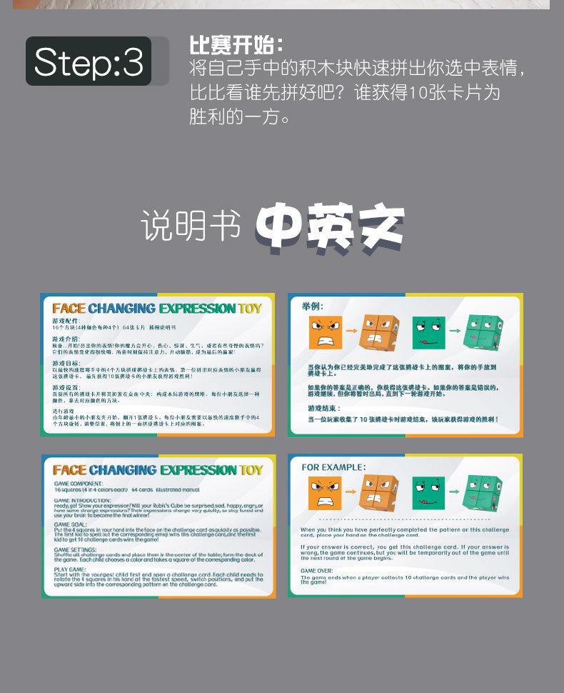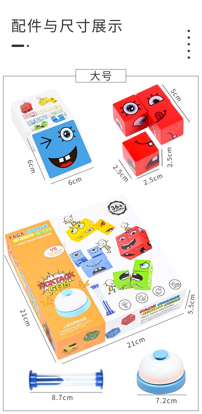 Bloques de construcción de cubo de Rubik grandes que cambian de cara: 21 x 21 x 5,5 cm Tamaño de la caja exterior: 47,6 x 43,5 x 44 cm Número de cajas: 90 Peso del producto: 0,65 kg Peso bruto/neto: 22/20,8 kg