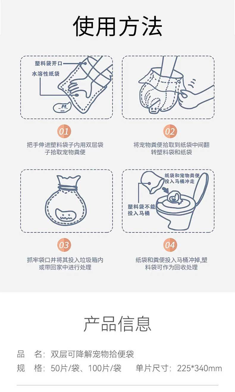 Práctica bolsa para excrementos de perro, bolsa de basura para excrementos de mascotas, bolsa desechable de doble capa para excrementos de perro, bolsa para desechar excrementos