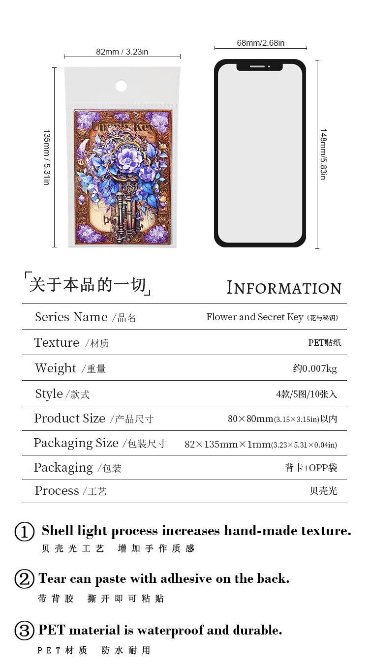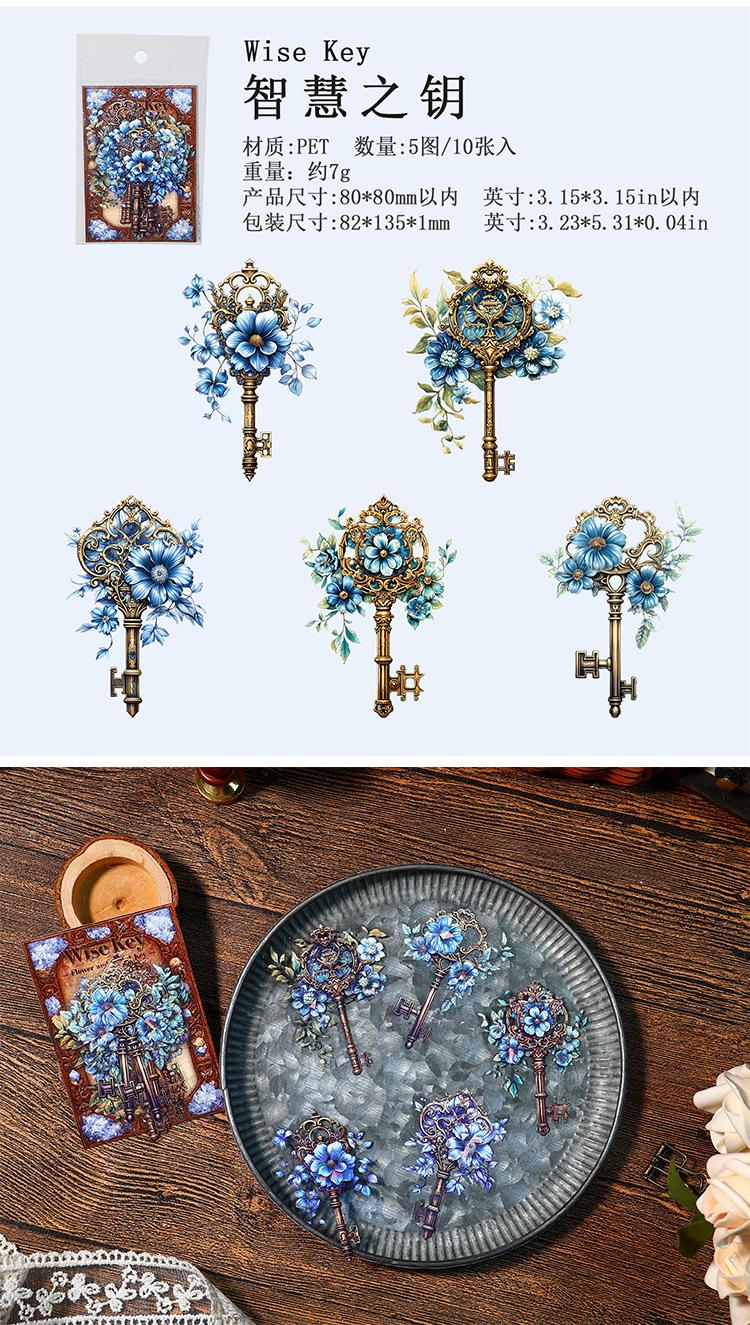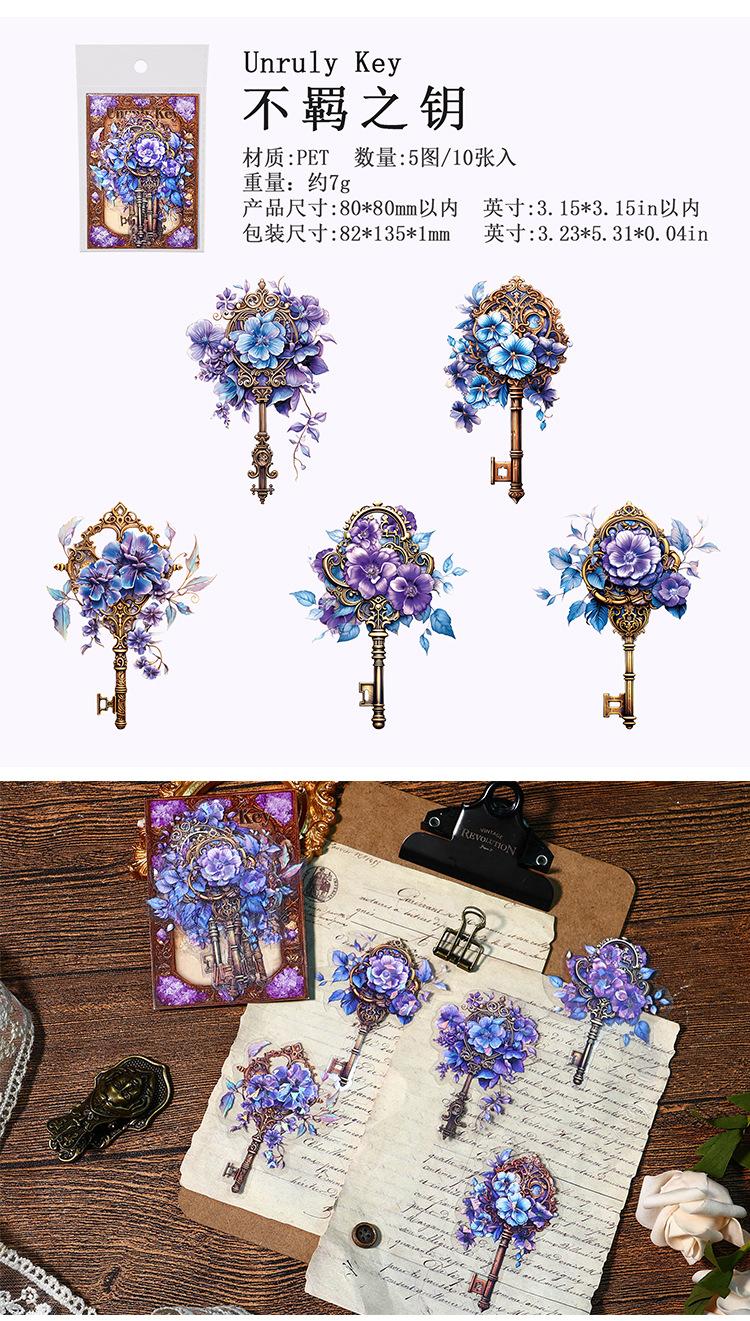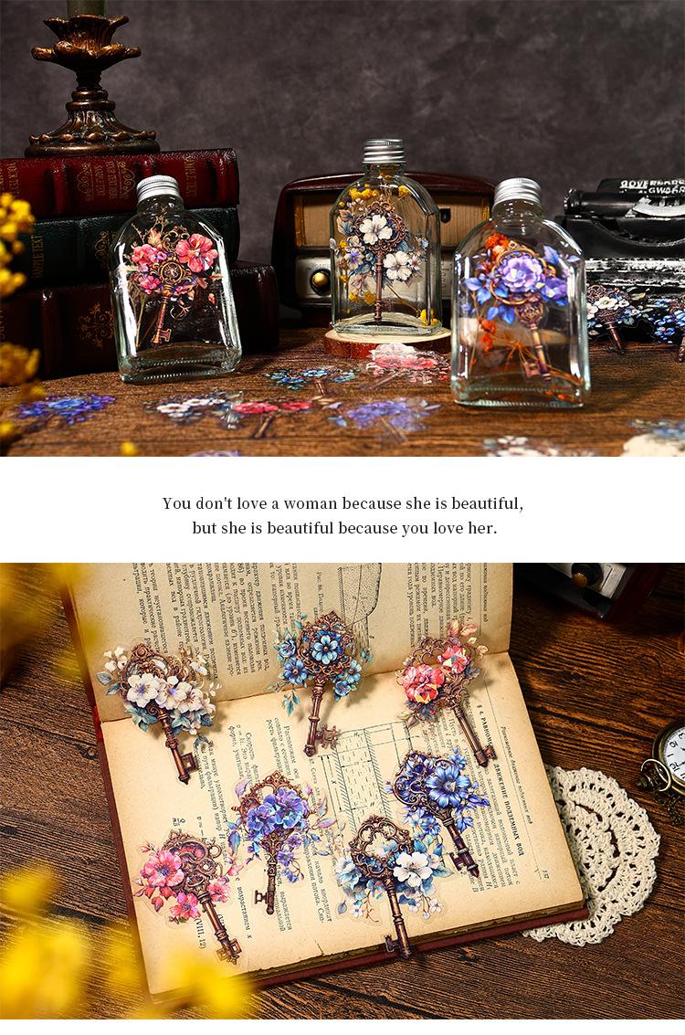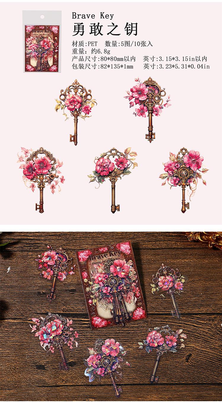 Serie de flores y llaves de bosque antiguo transfronterizo con encaje vintage, pegatinas para diario, decoración de collage de diario de mascotas