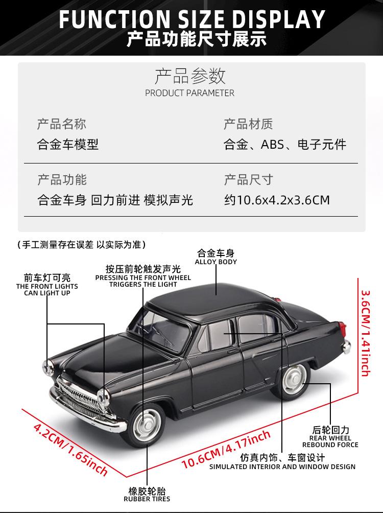 Modelo de coche de aleación GAZ 21, tamaño pequeño, 1/43, juguete Huili para niños, puesto en el mercado nocturno, adornos para coche de niños.