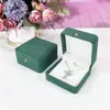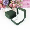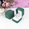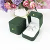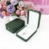 Dark green ring box; gold buckle with rounded corners