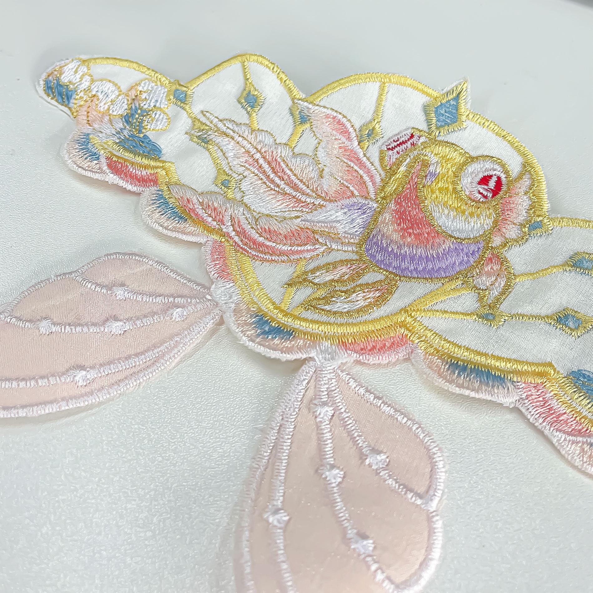 Parche de tela bordado a color directo de carpa, parche de venta caliente, estilo chino, cheongsam, regalo, ropa, accesorios decorativos DiY
