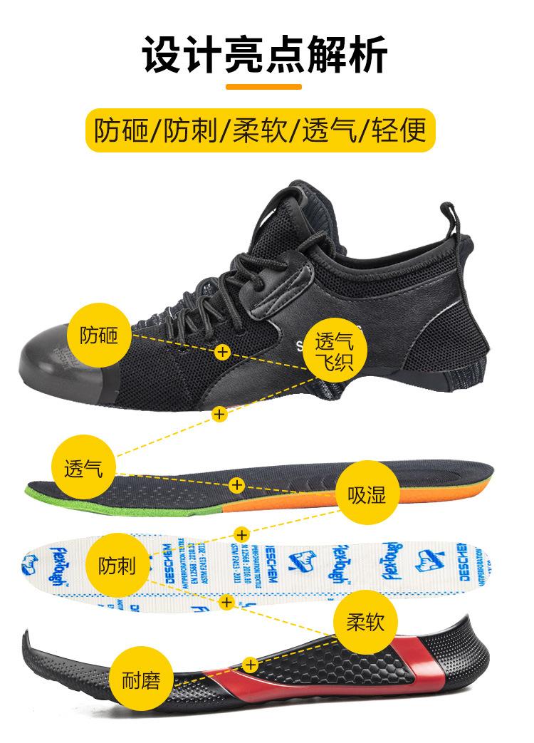 Los fabricantes suministran zapatos de protección laboral transpirables, zapatos deportivos de tejido volador, zapatos de seguridad antigolpes y antiperforación, zapatos de protección laboral, suministro transfronterizo.