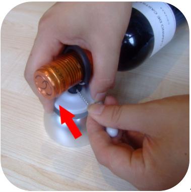 Abroche el cable de acero debajo del escalón de la botella de vino y apriete la brida (si no hay suficiente espacio, primero necesita desbloquearlo magnéticamente y aflojar el cable de acero para asegurar que haya suficiente espacio);