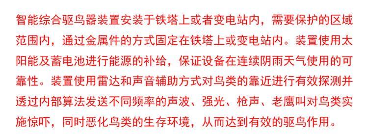 A medida que el entorno ecológico mejora gradualmente, cada vez aparecen más aves en nuestro campo de visión y cada vez se reproducen más aves. De marzo a mayo de cada año, las aves construyen nidos en las torres de líneas, lo que puede causar fácilmente cortes de energía. Los departamentos de energía correspondientes envían a un gran número de personal para inspeccionar los nidos de aves, pero para la protección de las aves, el personal correspondiente no puede destruir los nidos de aves de forma brusca. Dado que los materiales utilizados para los nidos de aves son variados, como ramas húmedas, alambres y metales, todos estos son conductores. Con vientos fuertes o días lluviosos, estos conductores caerán sobre las botellas de porcelana, provocando arcos eléctricos y disparos en las líneas. Estos eventos de disparo han causado cortes de energía a largo plazo, afectando la estabilidad de la producción y la vida. Para mejorar este evento de disparo y hacer que el repelente de aves sea inteligente sin dañar a las aves, nuestra empresa ha desarrollado especialmente un repelente de aves ultrasónico inteligente por voz, que puede ahuyentar fácilmente a las aves por personal relacionado con la energía.