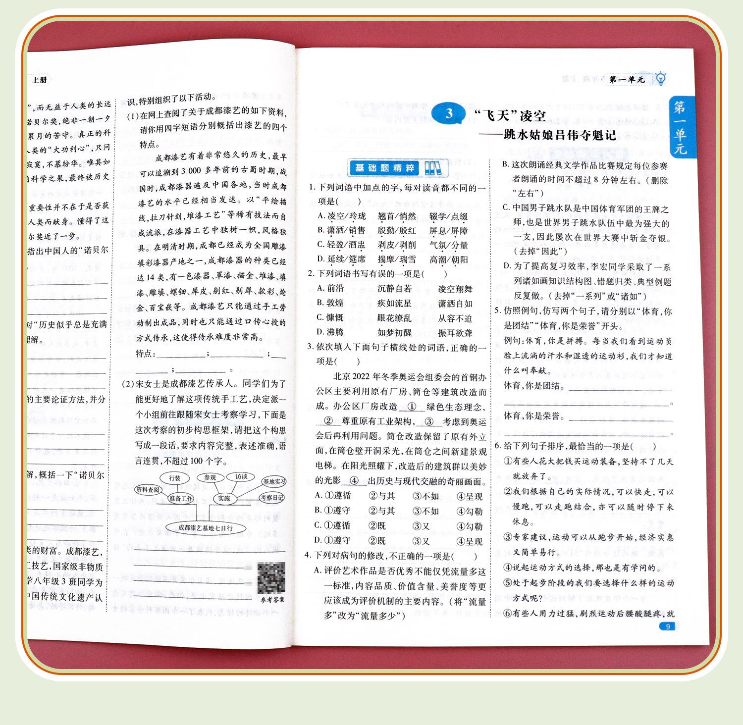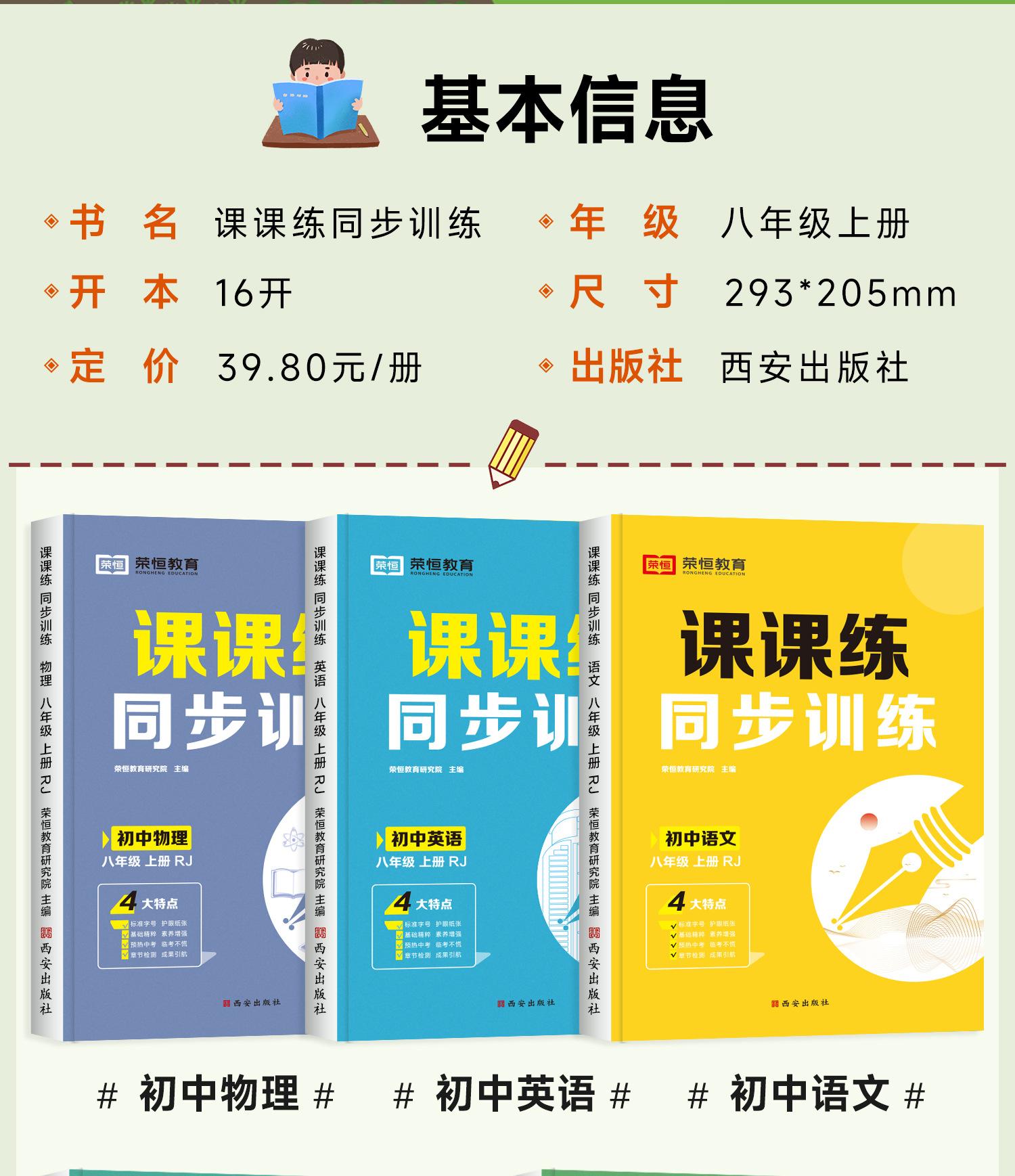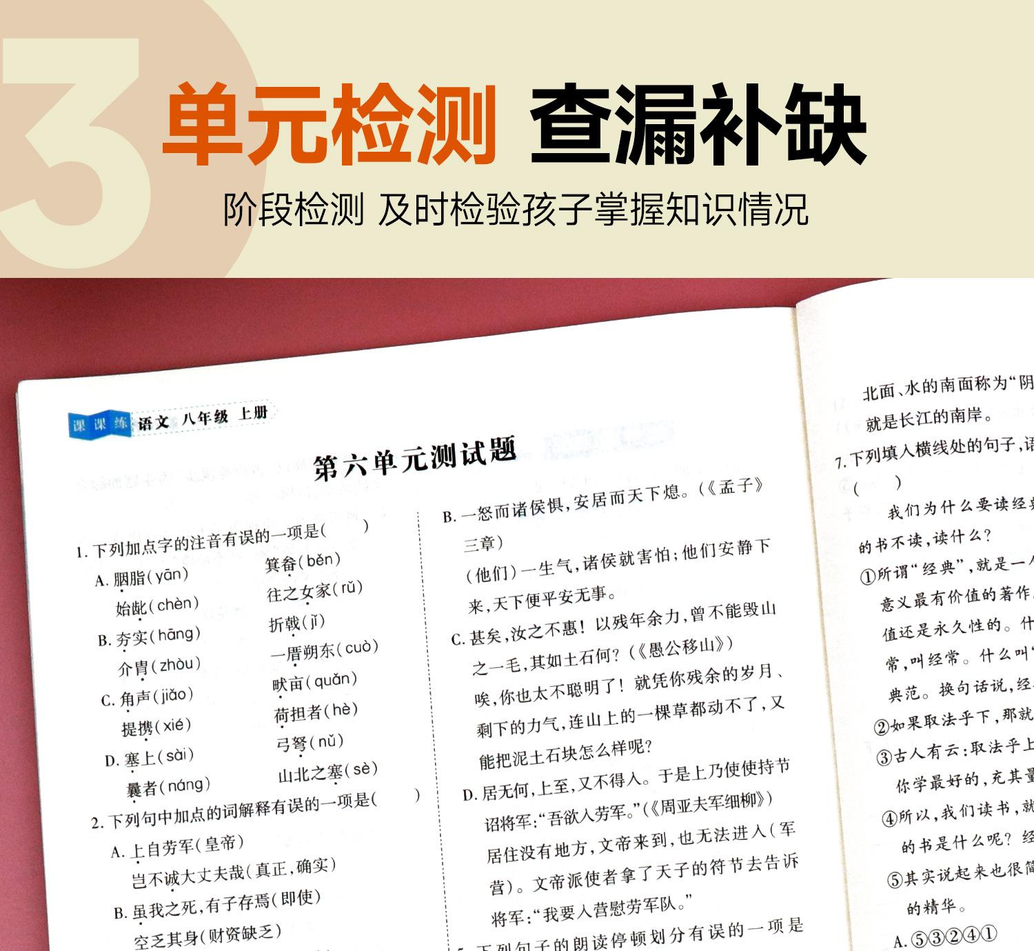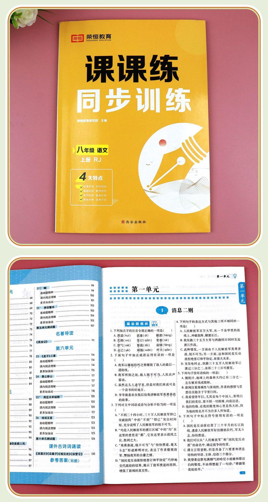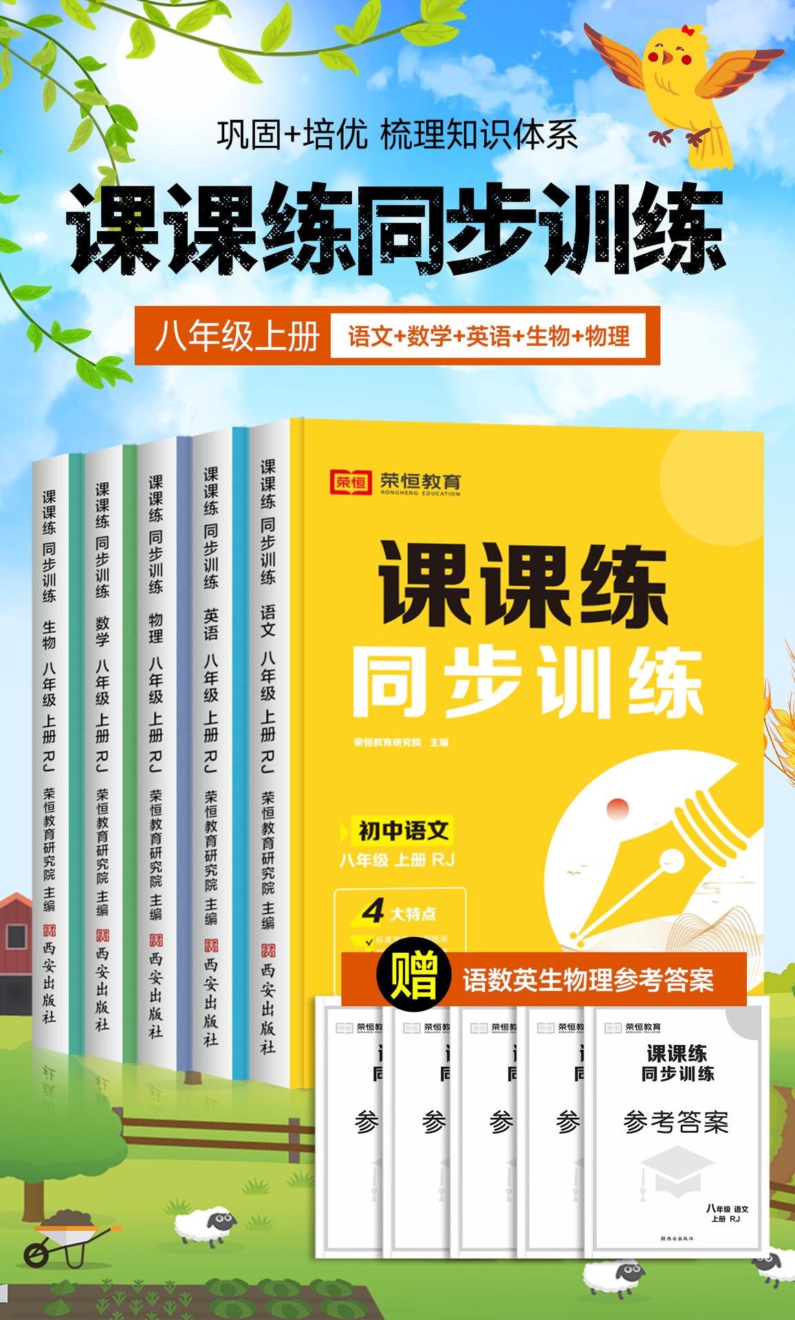 El primer volumen del libro de ejercicios de octavo grado, un conjunto completo de chino, matemáticas, inglés, física, enseñanza humana, preguntas de cálculo, sincronización especial.