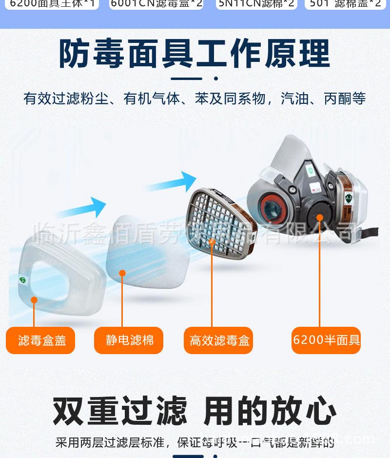 3M6200 dust mask (only mask without accessories), 5N11 cotton filter * 2, 501 cotton filter cover * 2, 6001NC ...