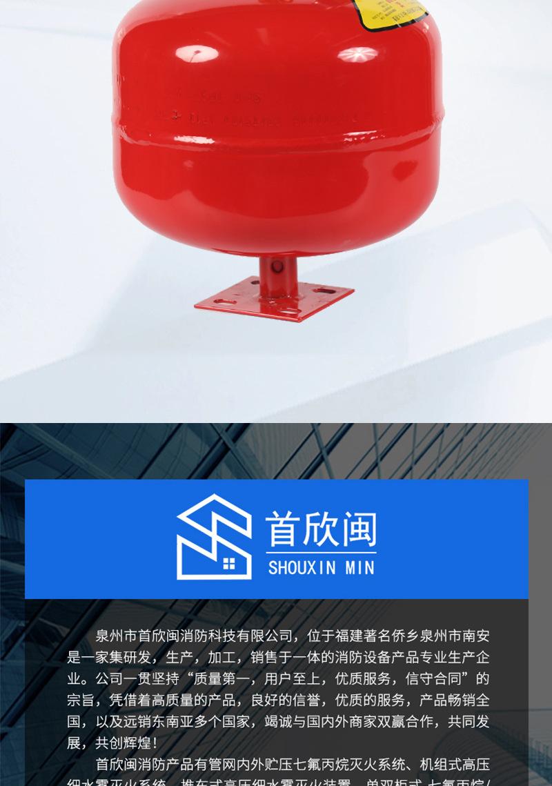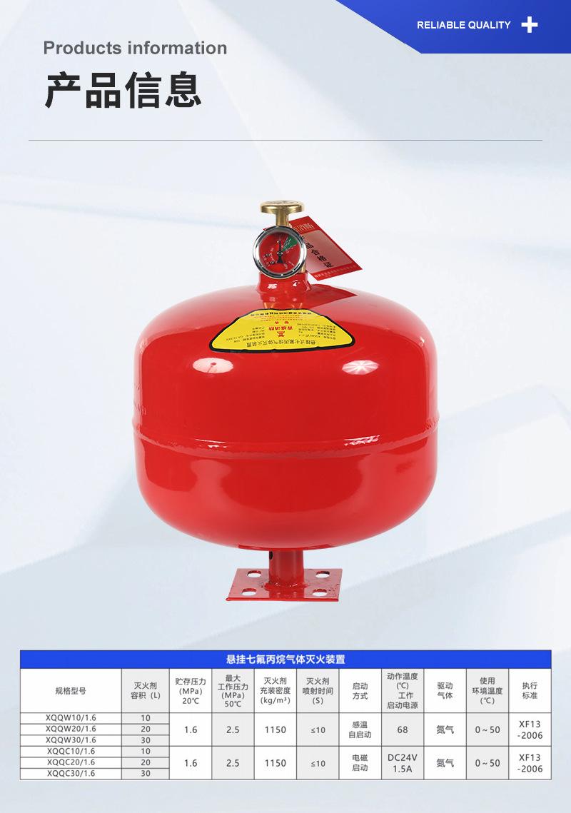 Extintor de incendios de alta eficiencia Shouxinmin Fire para sala de computadoras y subestación, dispositivo de extinción de incendios de heptafluoropropano suspendido de 6 kg.
