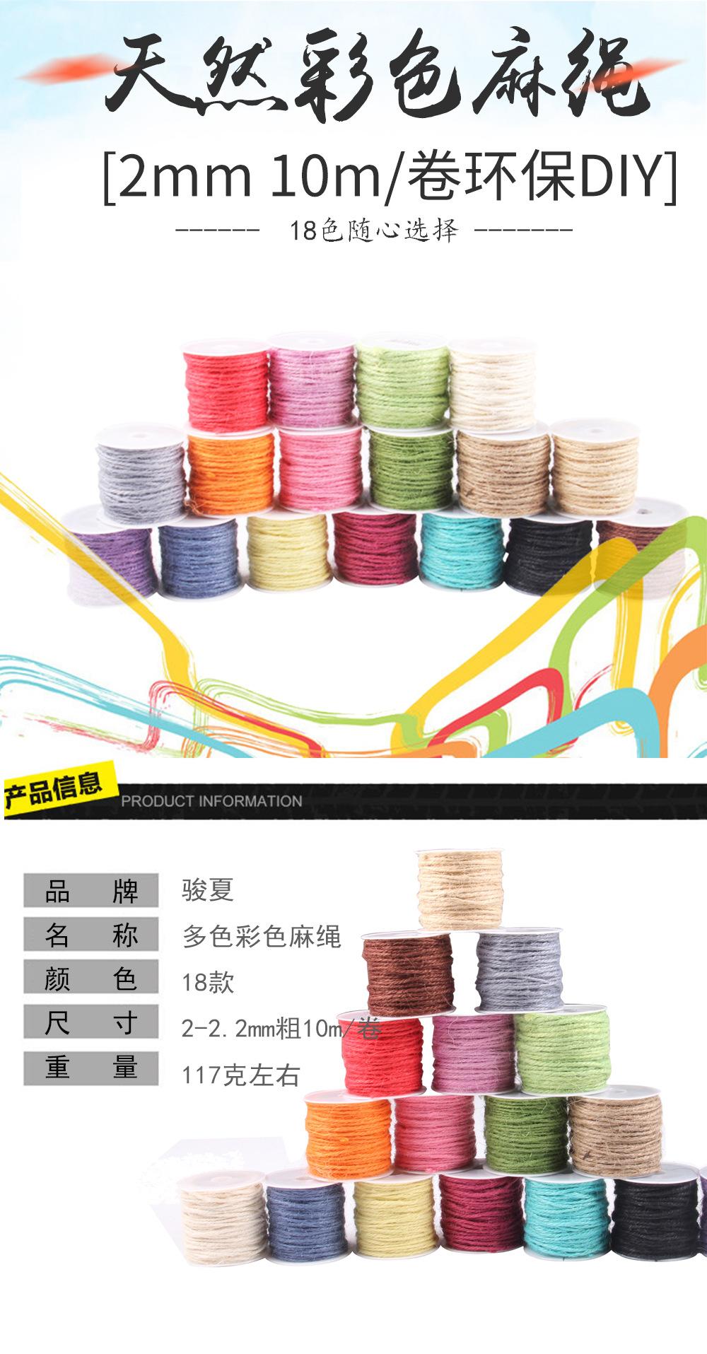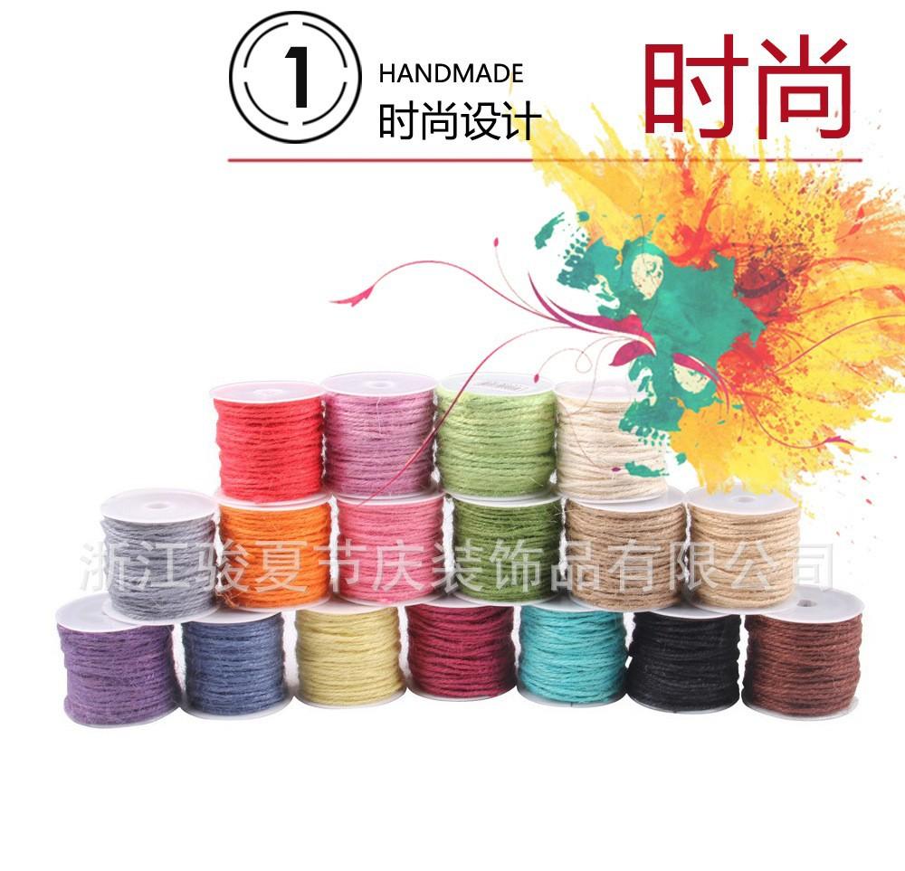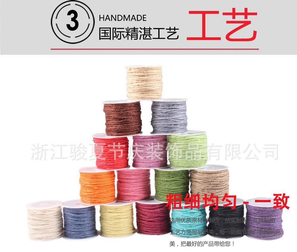 Venta caliente de accesorios de bricolaje hechos a mano de estilo europeo y americano, cuerda de cáñamo natural de tres hebras, cuerda de color de 2 mm, cuerda de etiqueta navideña
