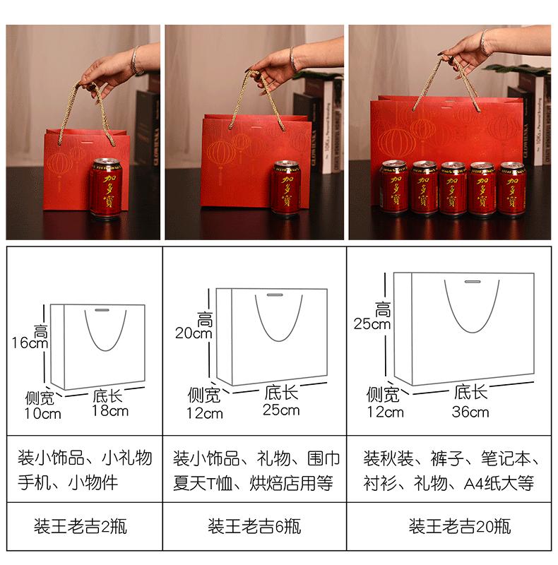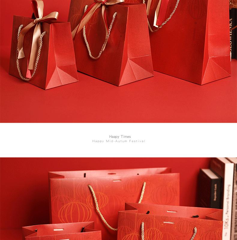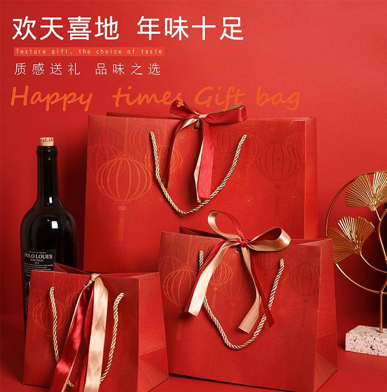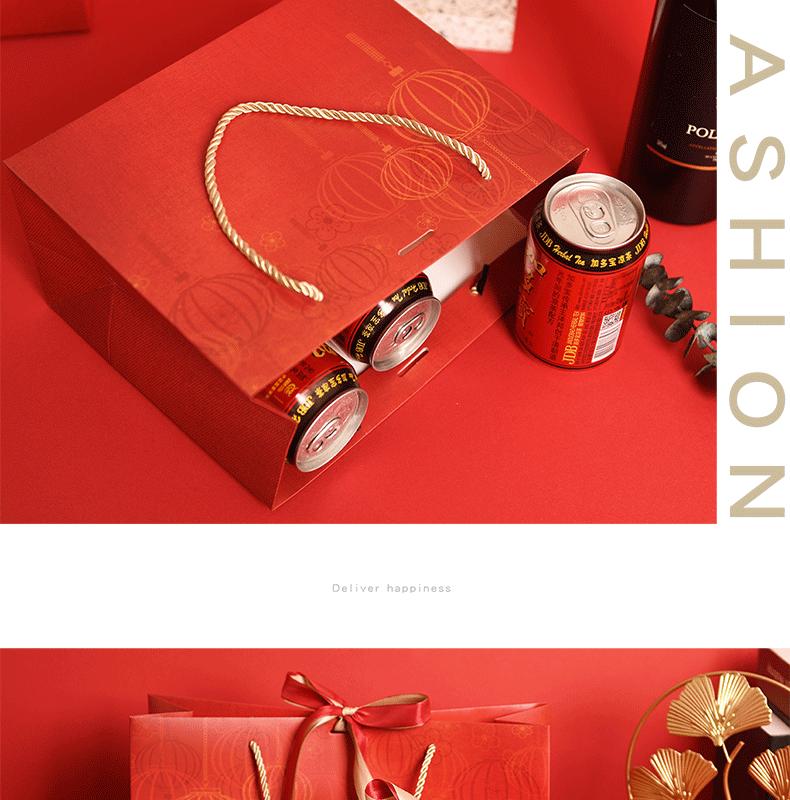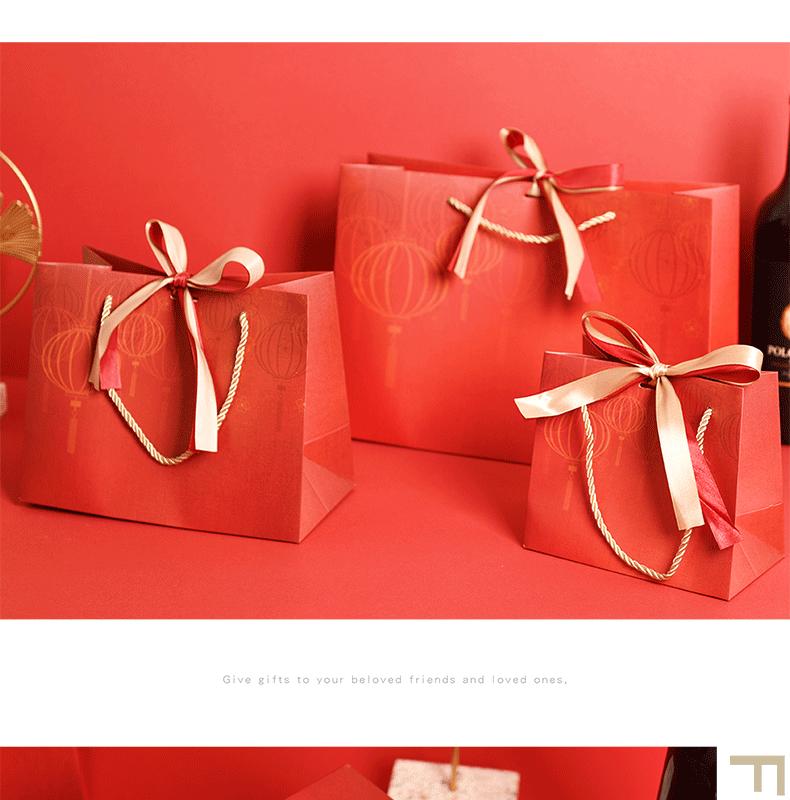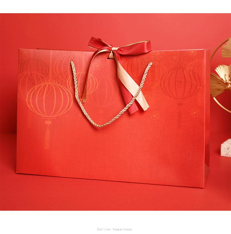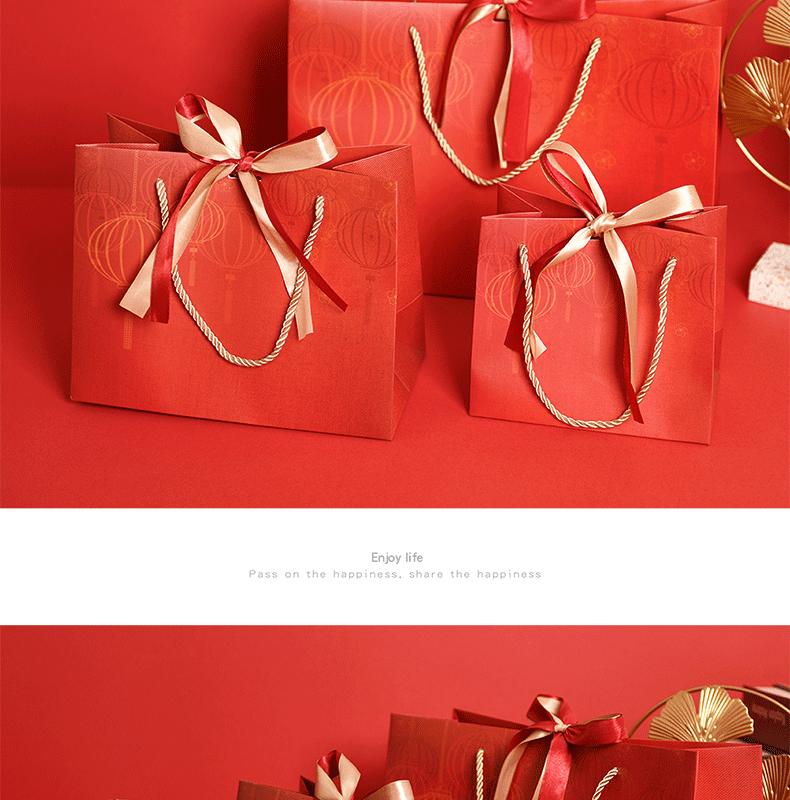 Bolsa de Regalo Linterna Roja Marea Nacional Sentido Avanzado Bolsa de Embalaje para Regalo Festival de Primavera Bolso de Mano con Cinta Imprimible