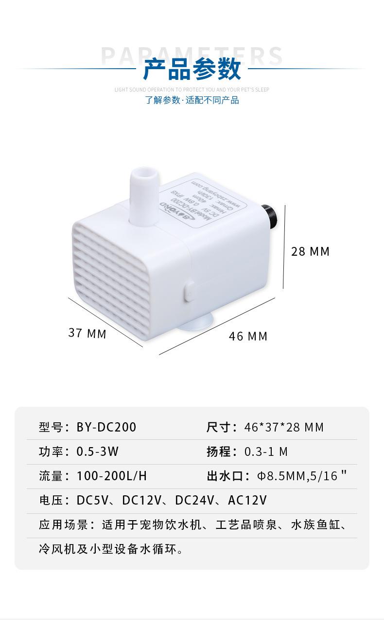 Suministro de bomba de agua para dispensador de agua para mascotas, bomba de agua de CC sin escobillas, bomba de agua inalámbrica para cultivo sin suelo para mascotas.