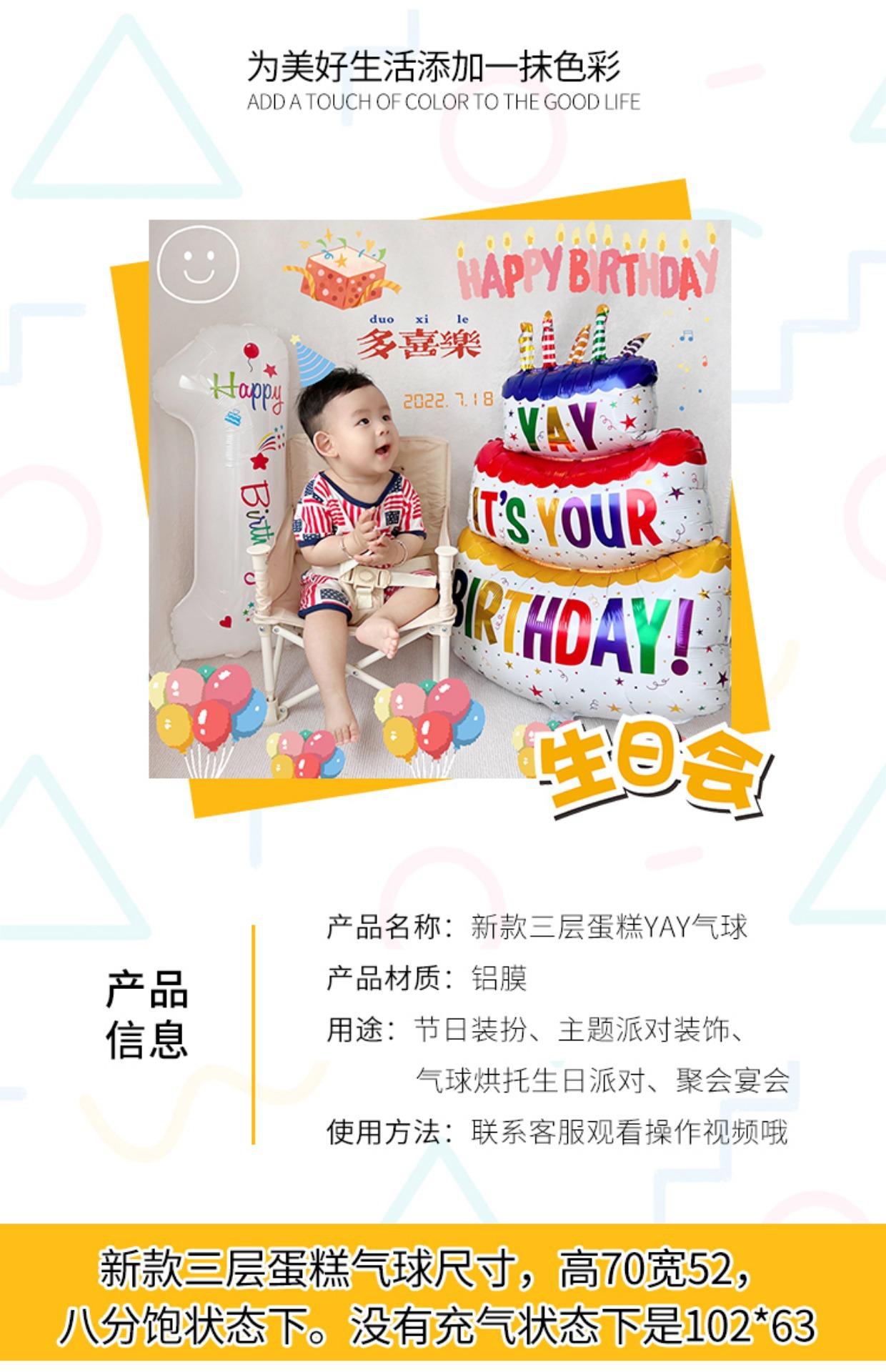 Globo de pastel de tres capas de color para niños, globo de película de aluminio, decoración de cumpleaños de bebé, diseño de escena, accesorios para escena fotográfica