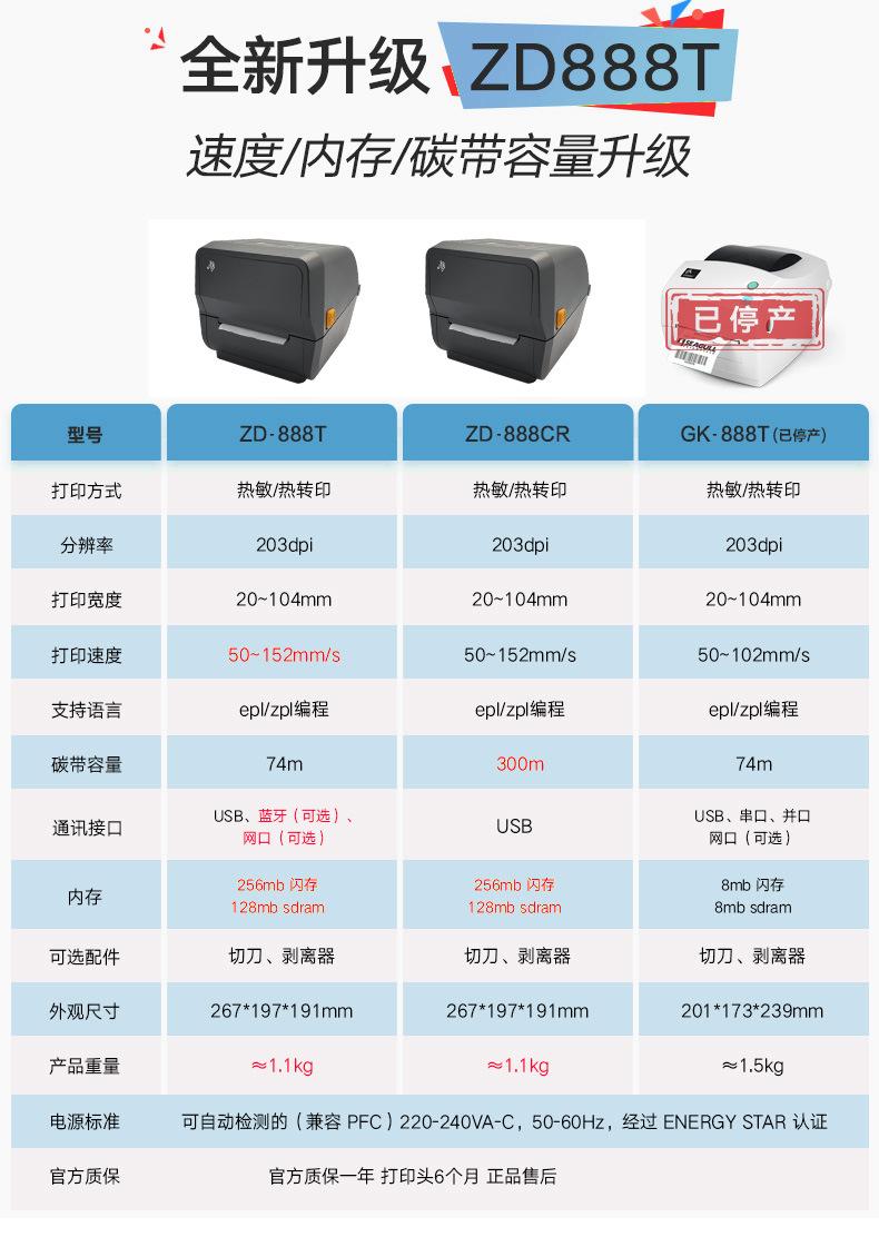 Impresora de Etiquetas Autoadhesivas Zebra Zd888-Cr/Gk888T Código de Barras Qr Regalo Térmica