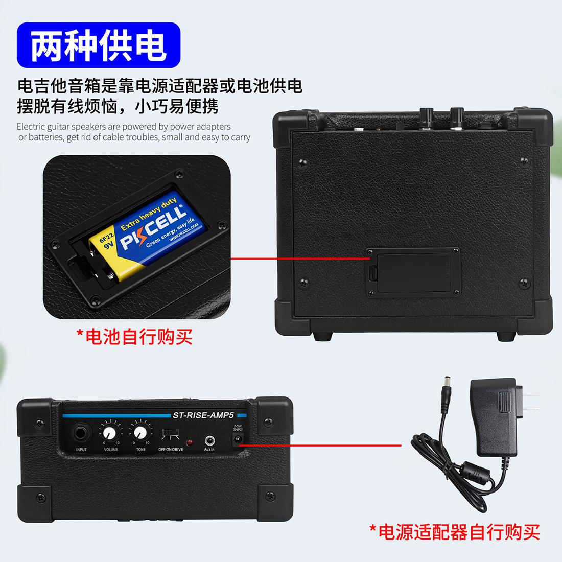 Punto de venta de uso:Adecuado para guitarra eléctrica o bajo, con dobladillo en las cuatro esquinas para evitar golpes y desgaste, dos métodos de alimentación: batería o adaptador de corriente, la rejilla del altavoz está finamente elaborada y no es fácil que se ensucie.