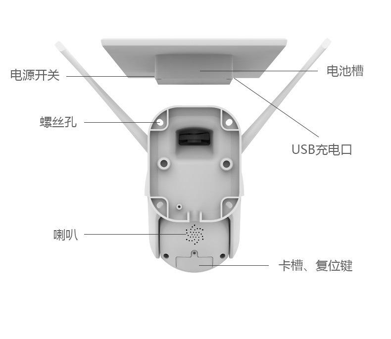 Bajo el sol (incluida la luz natural), el panel solar de la cámara carga la batería (batería de litio 18650 3.7V), y la cámara necesita energía de la batería para funcionar normalmente.