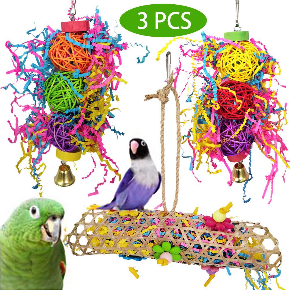 Juguete para loros, juguete para pájaros, bola de ratán cepillado, cuerda para tirar, juego de 3 piezas