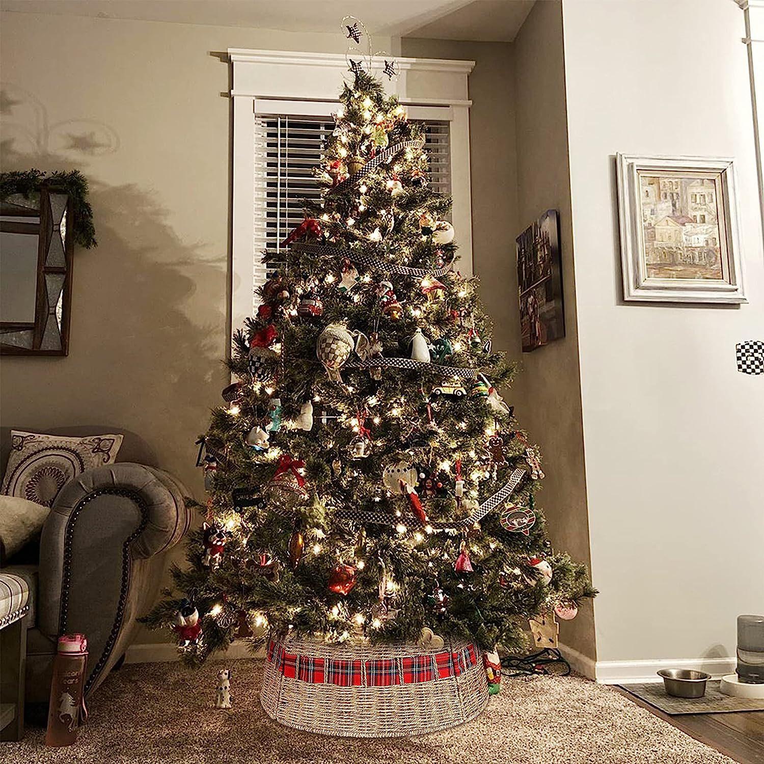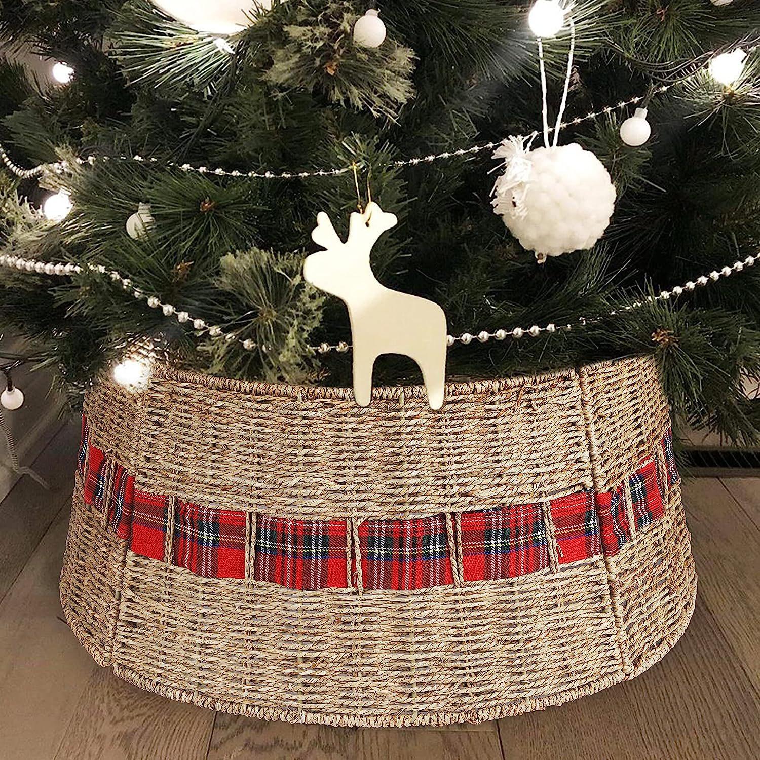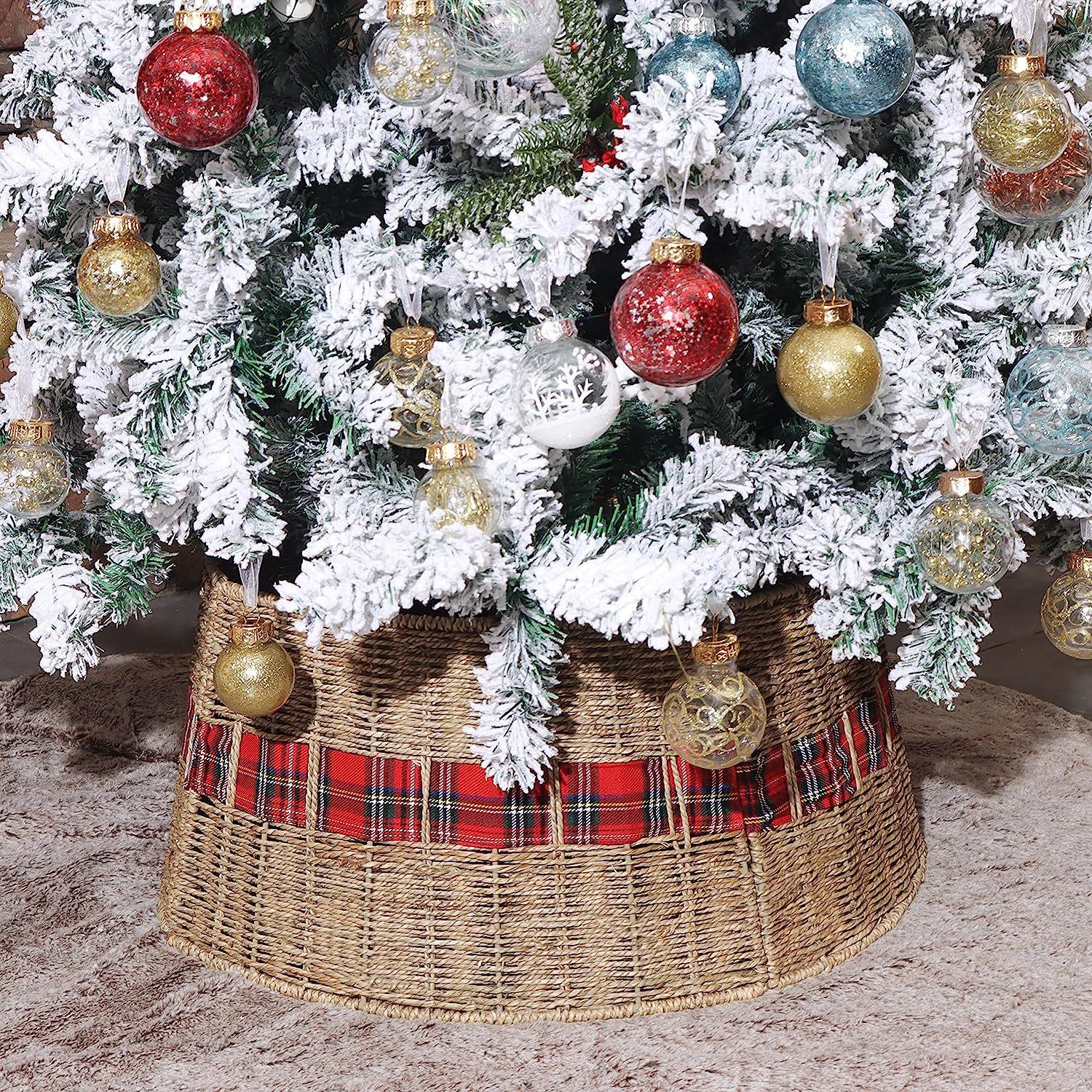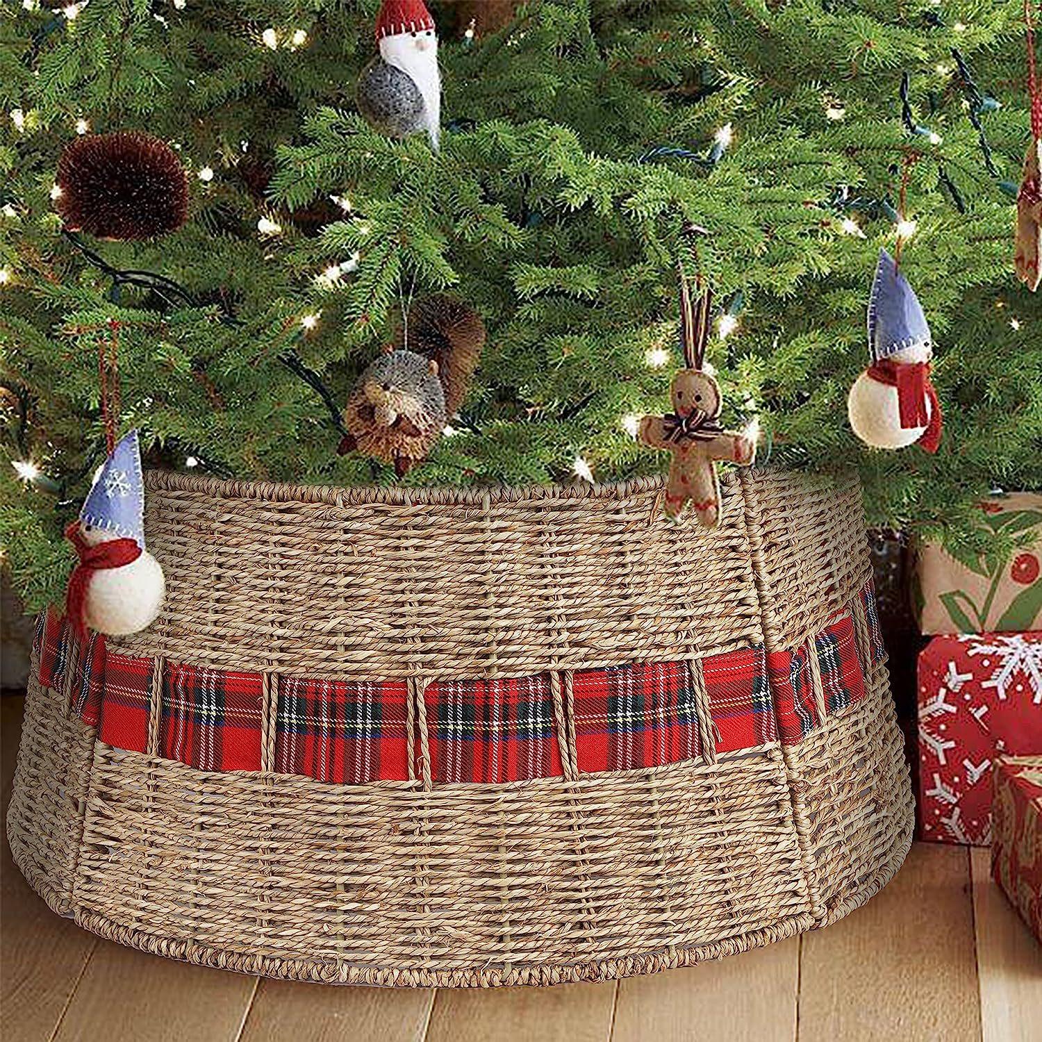 Amazon Nuevo Base Columpio Árbol de Navidad Tejido de Paja Escena de Árbol de Navidad Accesorios de Diseño Decoraciones Artesanales Navideñas