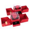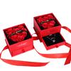 Nueva caja de regalo con doble puerta roja y una rosa eterna para pendientes, anillos, collares y joyas.