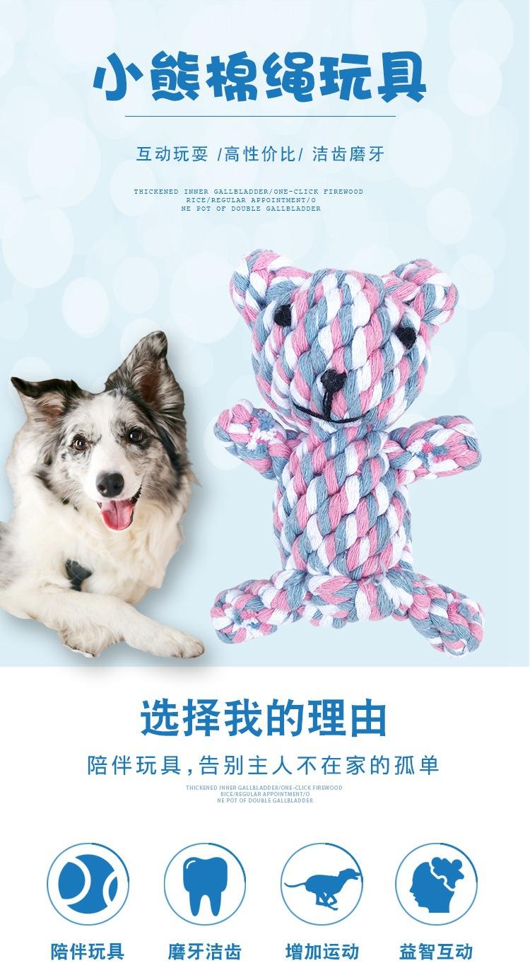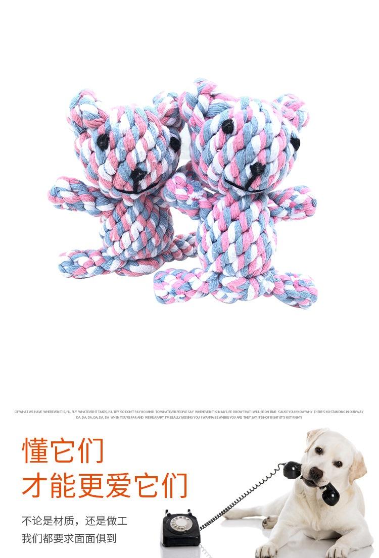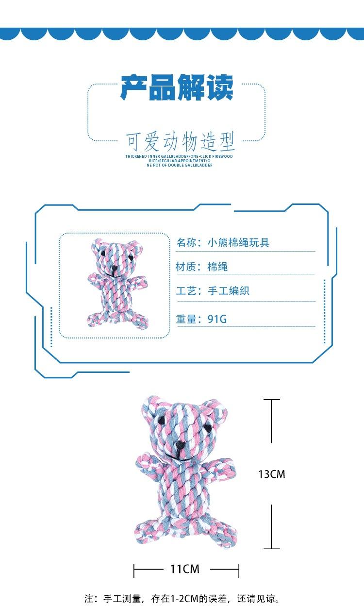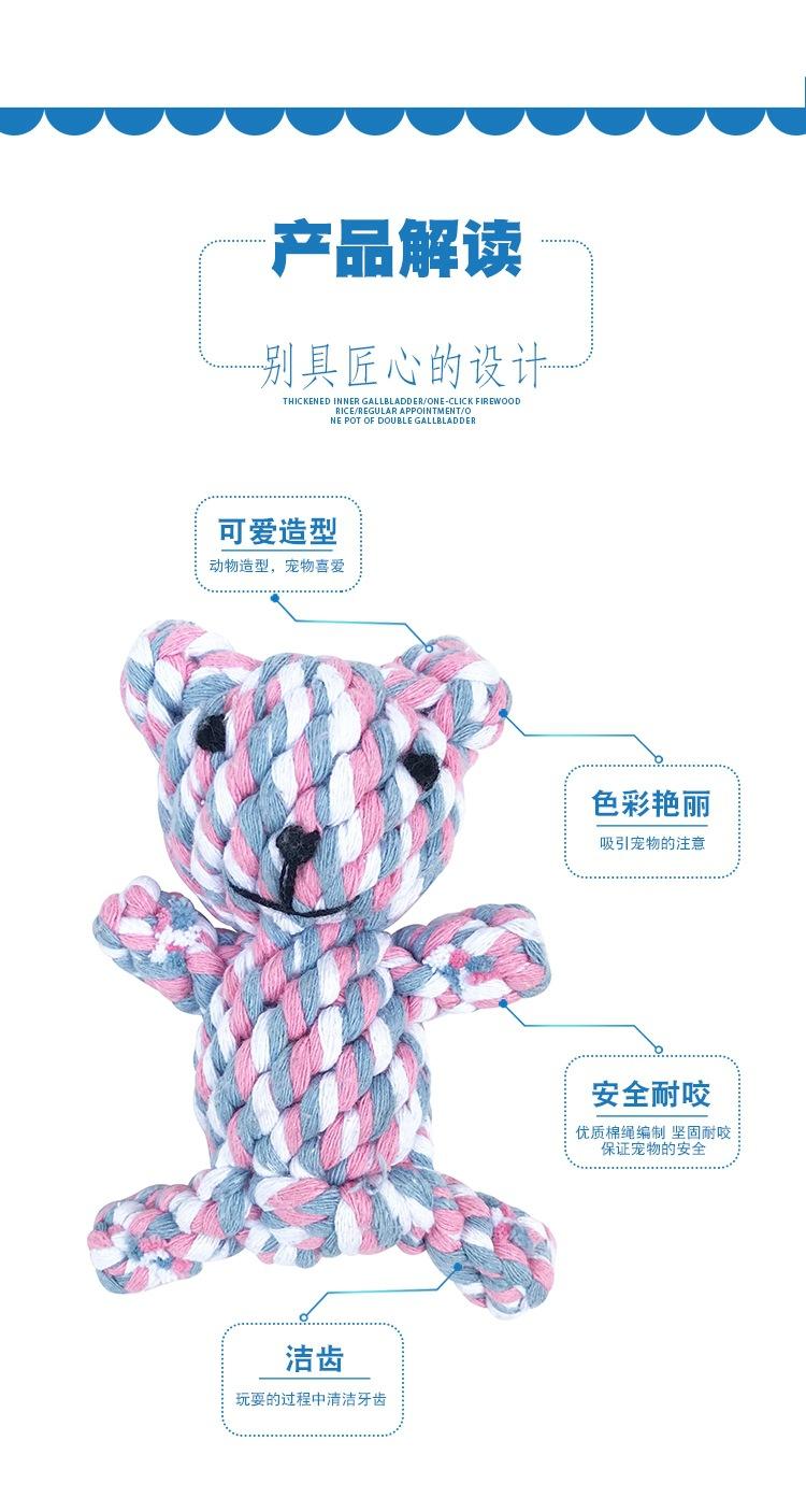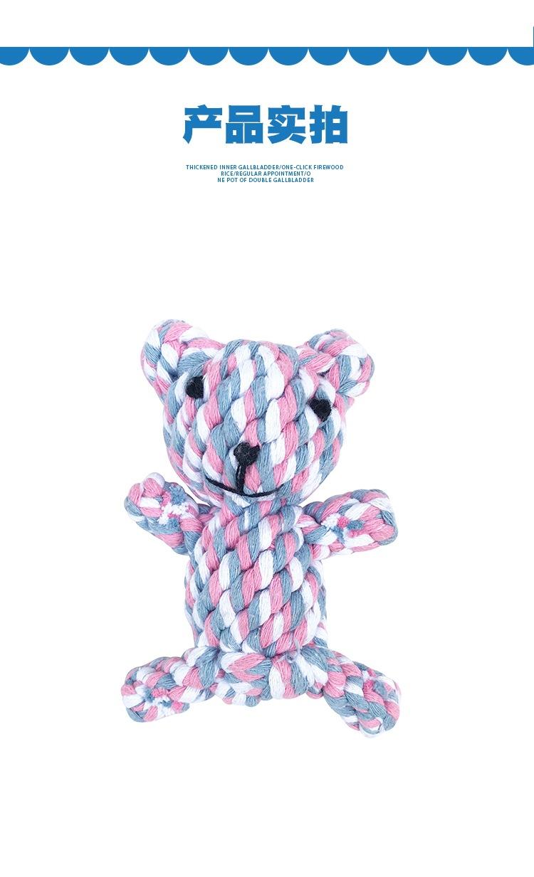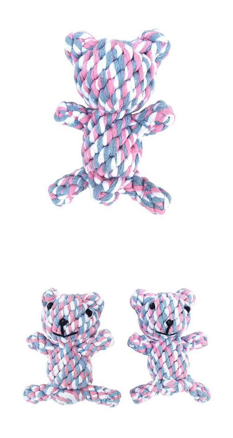 Juguete de cuerda de algodón con forma de oso para perro, tejido con nudos, para limpieza de molares.