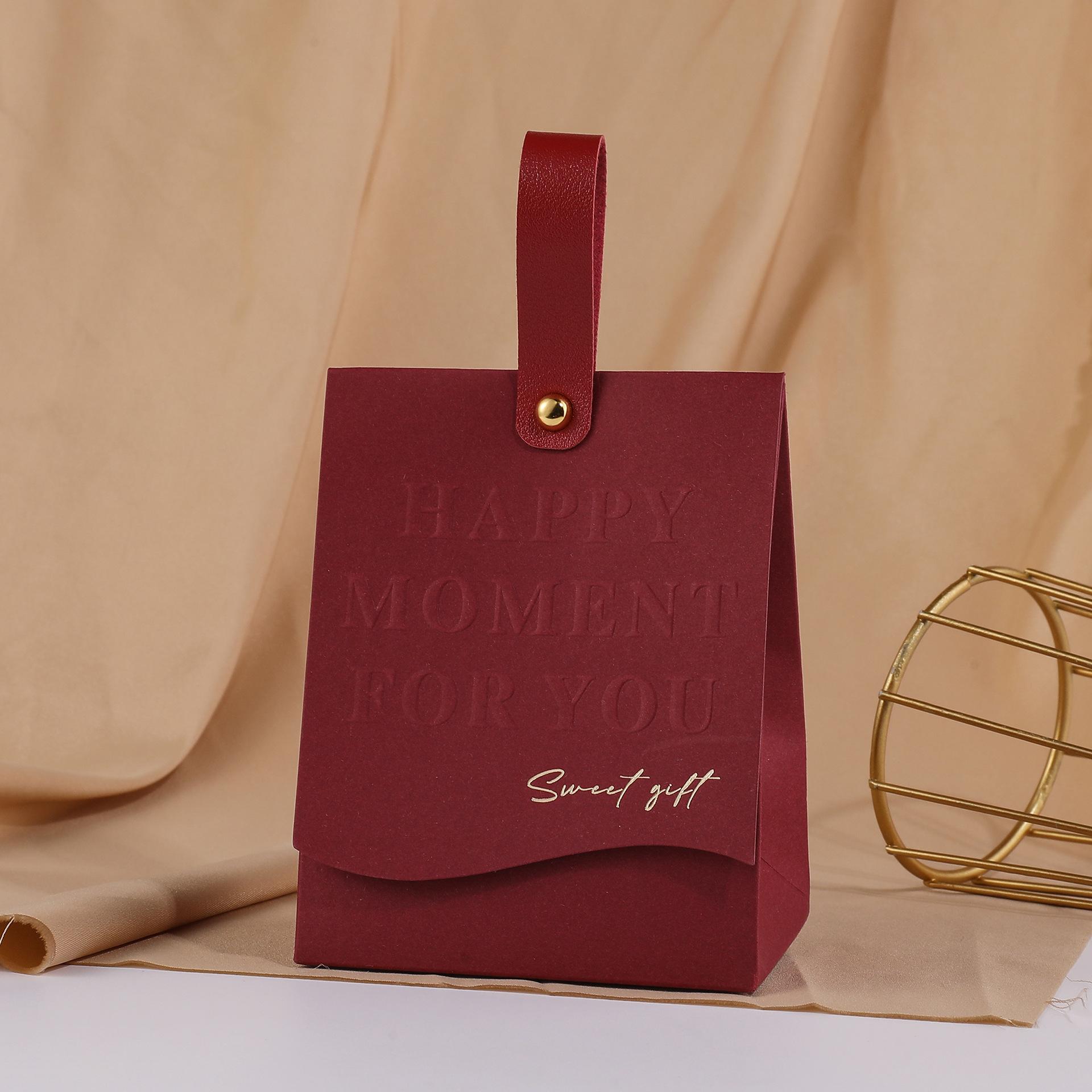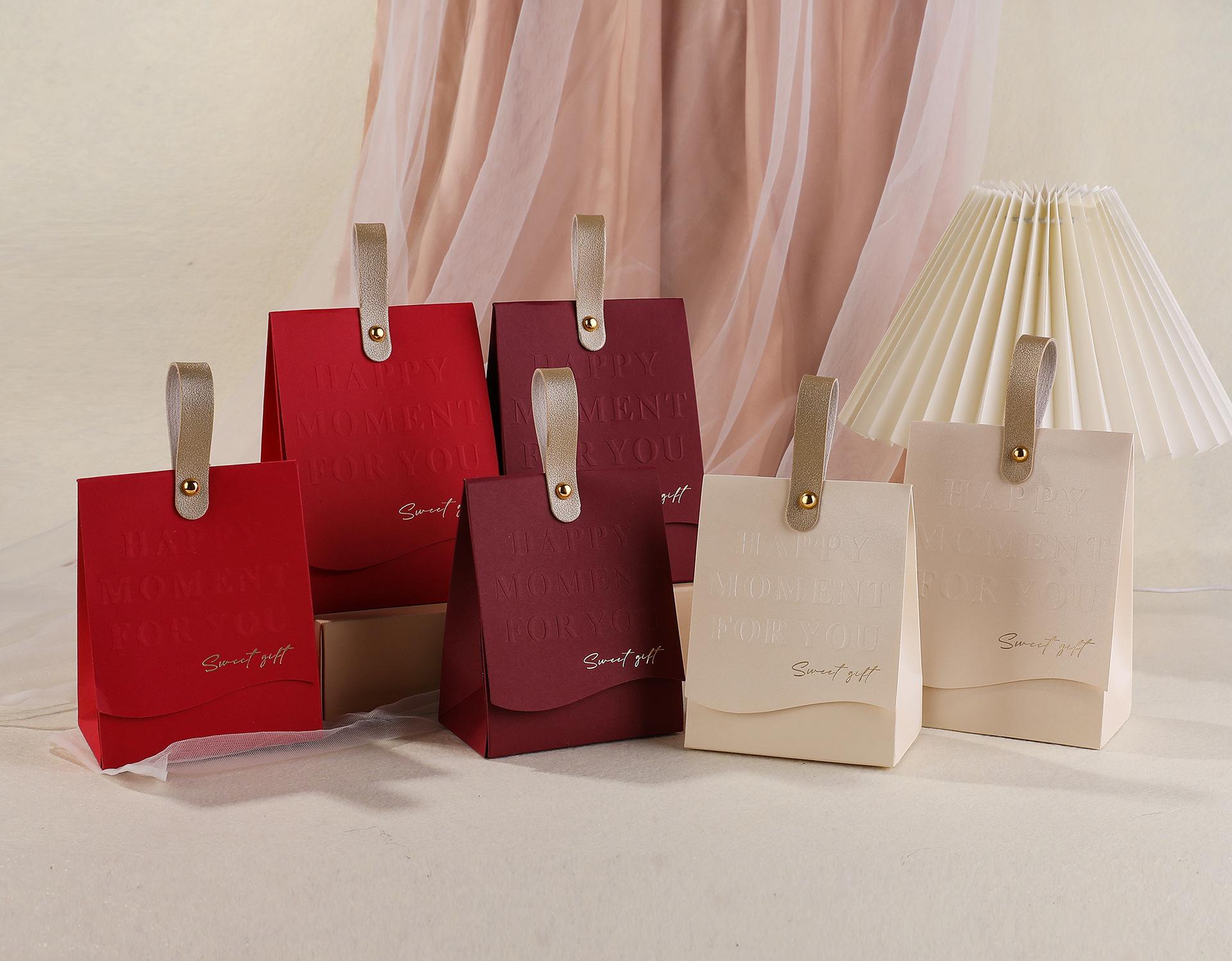 Beige pearlescent paper box + gold leather, Burgundy cardboard box + gold leather, Red box + gold leather, Bei...