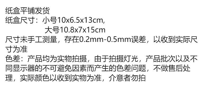Small size 10x6.5x13cm, Large size 10.8x7x15cm