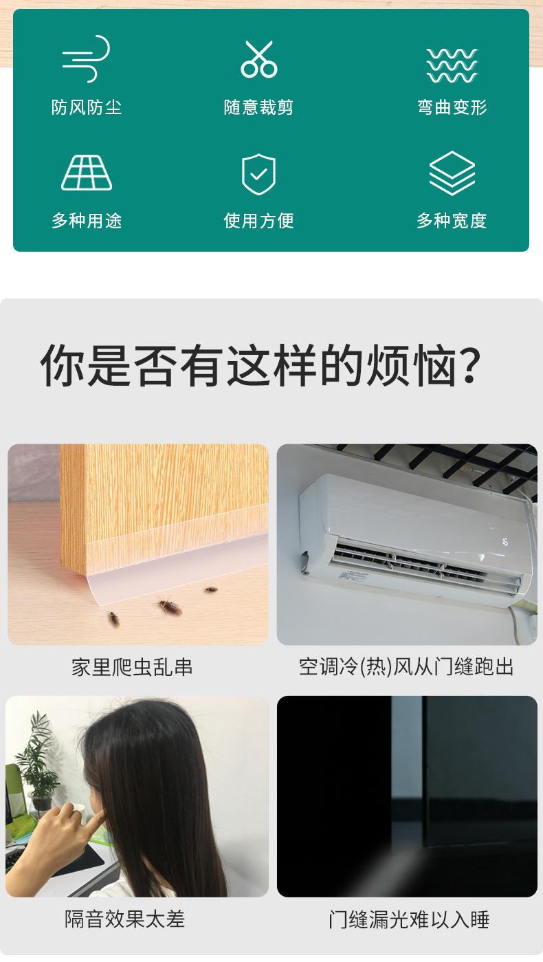 Tira de sellado de costura de puerta, parte inferior de la puerta, parabrisas, artefacto, puerta de vidrio, puerta de tienda, oficina, tira de sellado de aislamiento térmico a prueba de viento