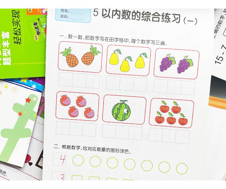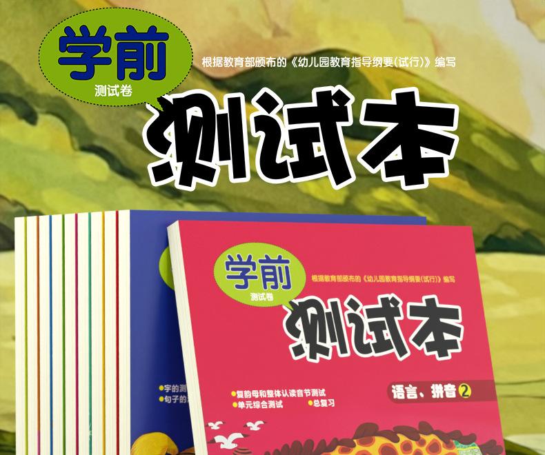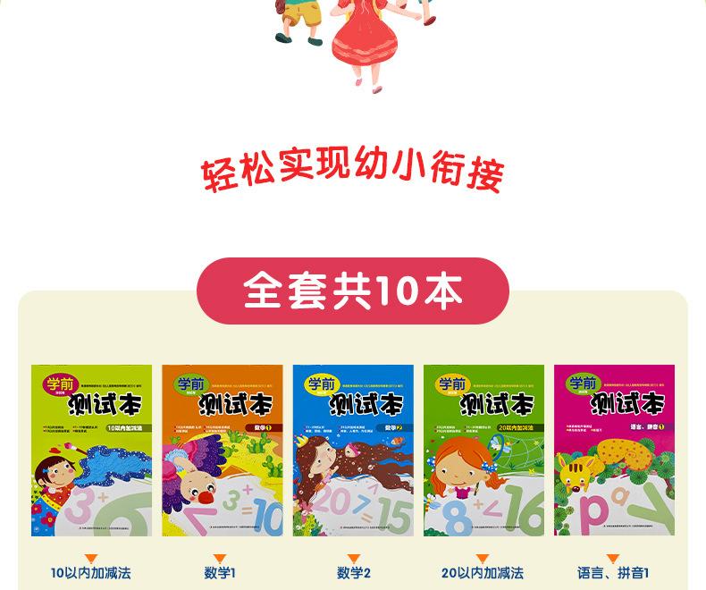 Libro de Prueba de Transición Preescolar para Suma y Resta con Números 10/20/50/100, Ejercicios Divertidos de Pinyin y Caracteres Chinos para Jardín de Niños