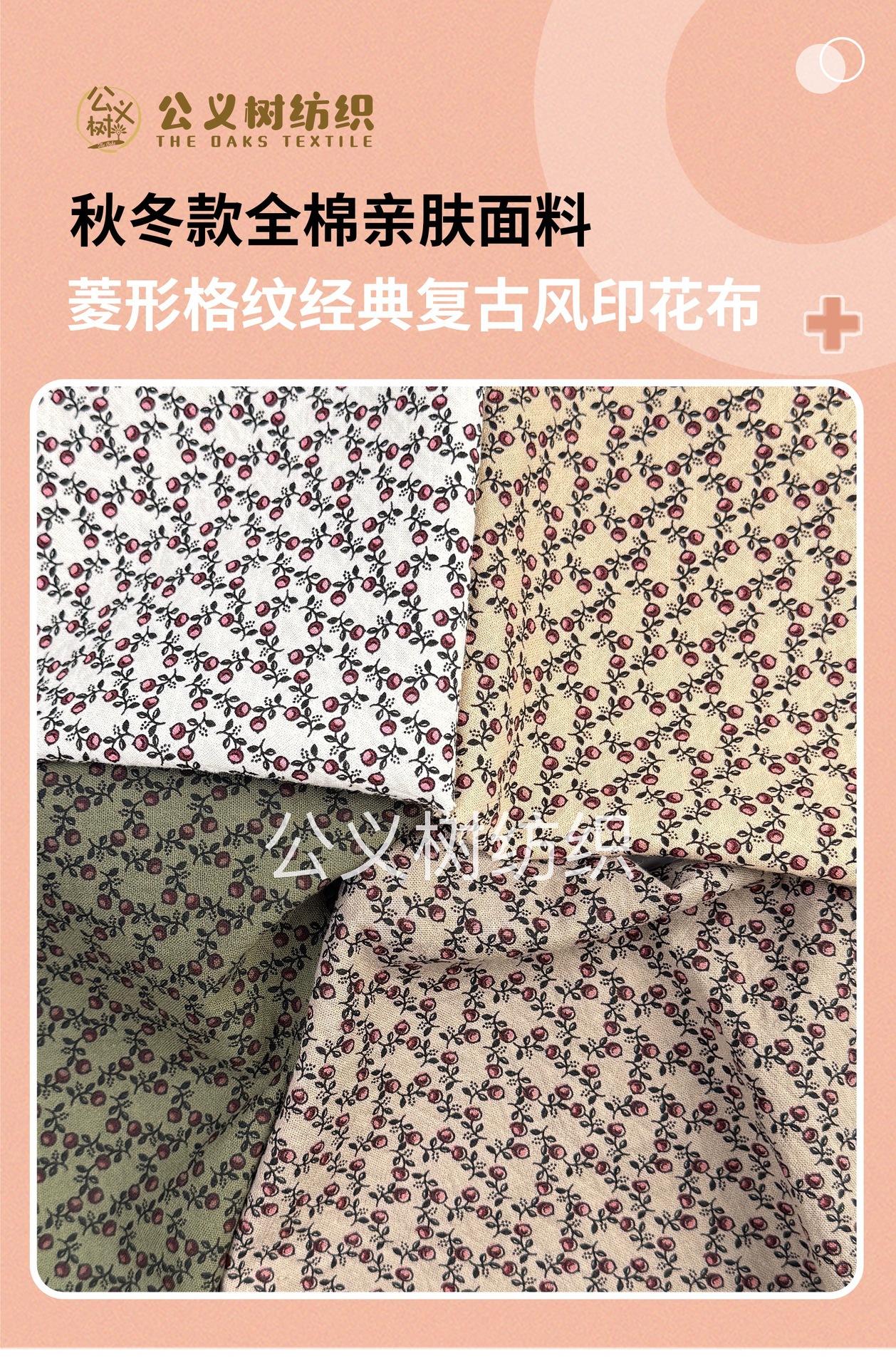 Tela de algodón "Frutos de la Vid" para otoño e invierno, agradable para la piel, con estampado continuo de jacquard a cuadros de rombos.