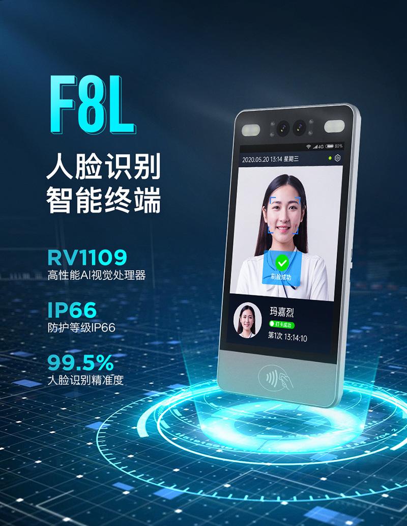 El 21 de septiembre, Guangdong Telpo lanzó oficialmente los primeros terminales de reconocimiento facial de la industria, los F8L y F7, basados en la plataforma de chip RV1109. Los terminales de reconocimiento facial Telpo F8L y F7 se desarrollaron con base en el sistema Linux 4.19 y utilizan el algoritmo ArcFaceArm Linux-1109 de ArcSoft, una empresa de algoritmos de visión artificial de renombre mundial. Se puede decir que han incorporado "motores duales" en términos de rendimiento y funciones.