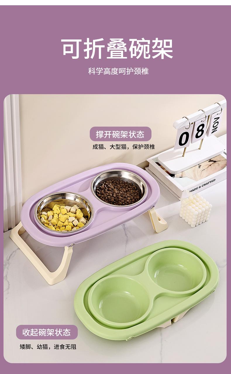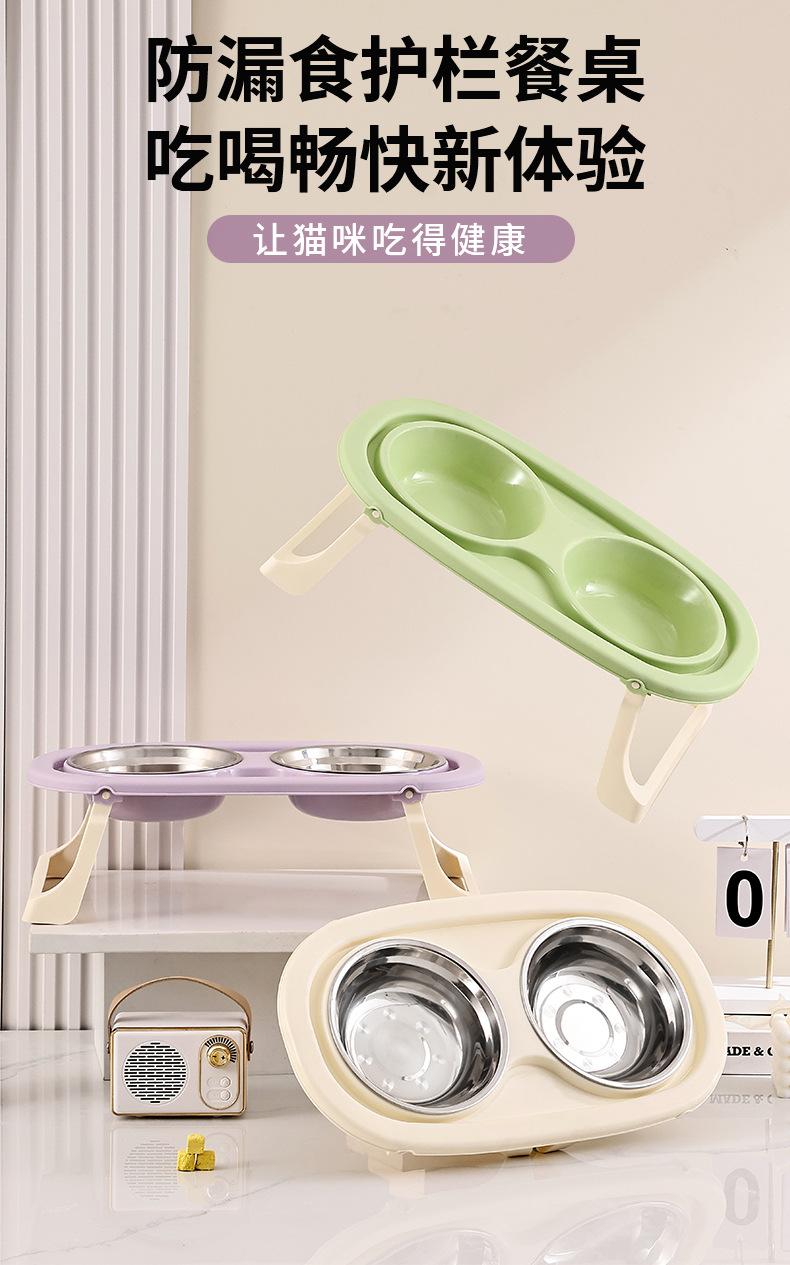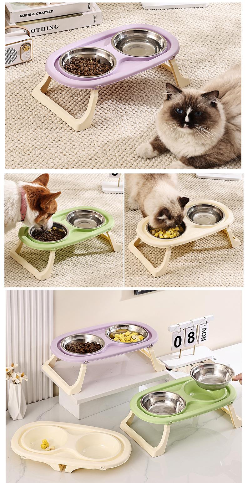 Tazón para perros de acero inoxidable plegable lindo tazón para gatos tazón doble a prueba de fugas comida Tazón para mascotas tazón para alimentación de gatos y perros tazón de arroz para perros