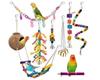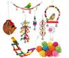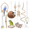 Set combinado de juguete para loro de 8 piezas, nido de cáscara de coco, escalera, cuerda con campana, juguete para morder, estación de color, palo