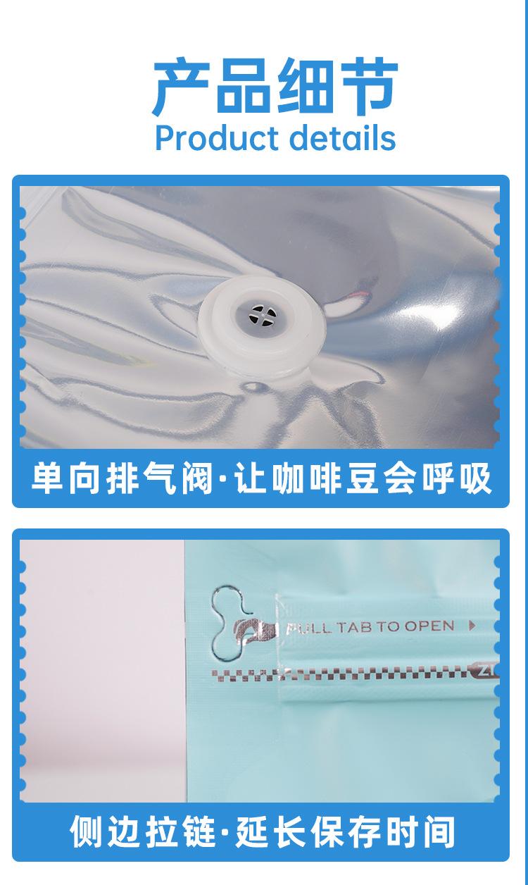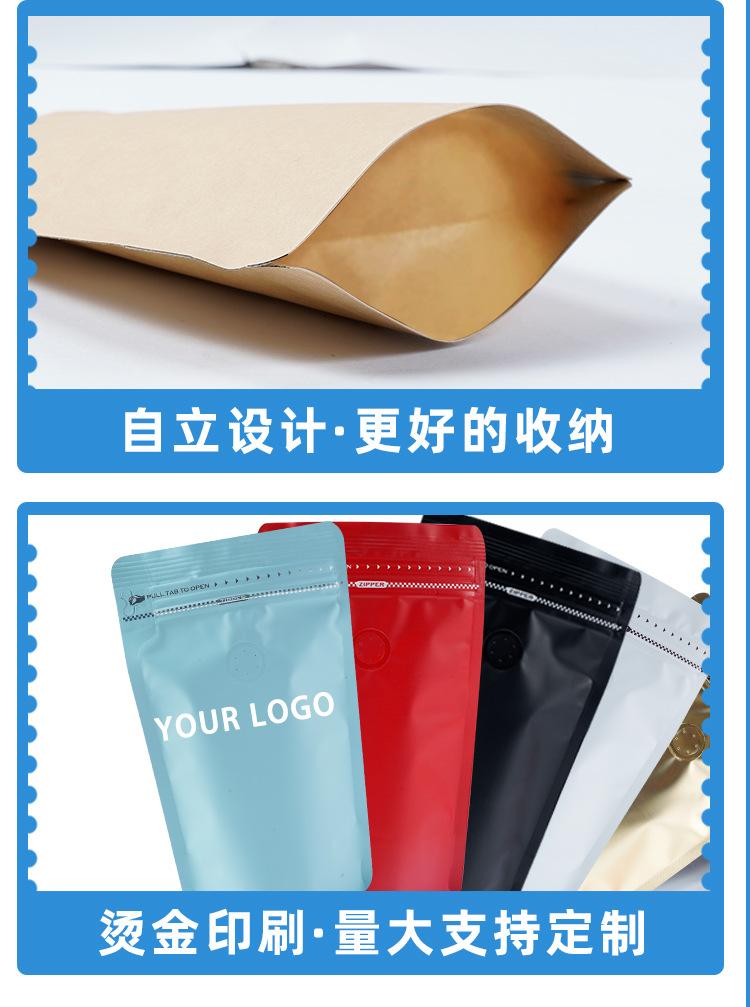 Bolsa de Embalaje de Grado Alimenticio Autoportante con Cierre Lateral Cremallera Café Autosellante Aluminio con Válvula de Aire Té Té Grano de Café Bolsillo de Embalaje