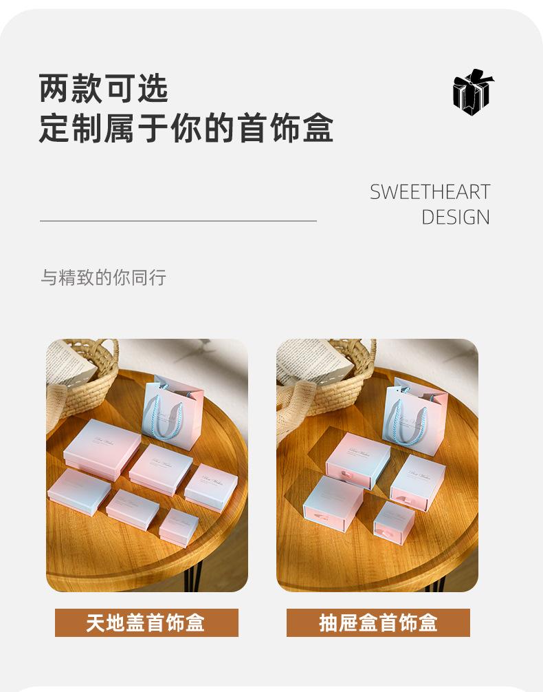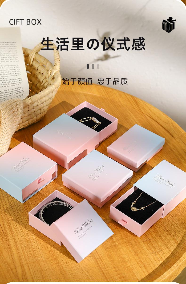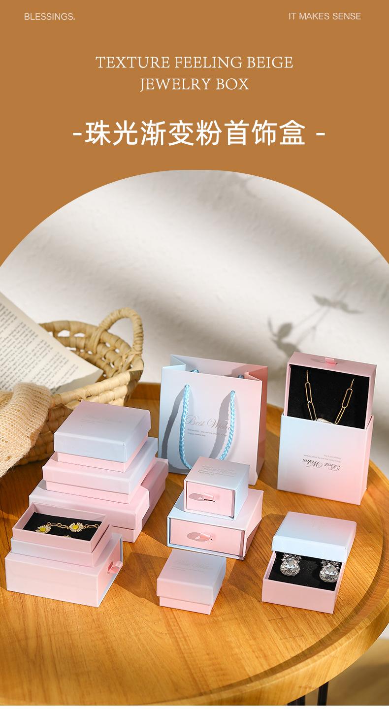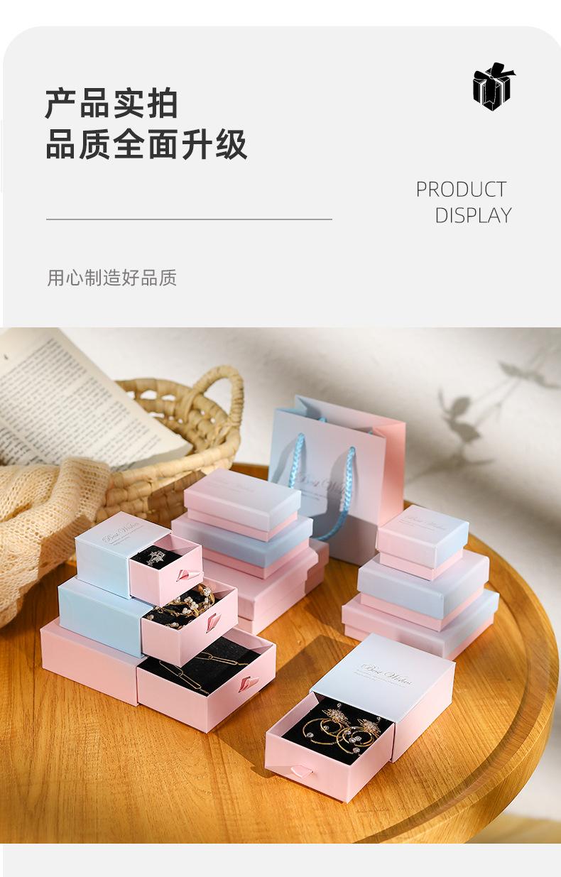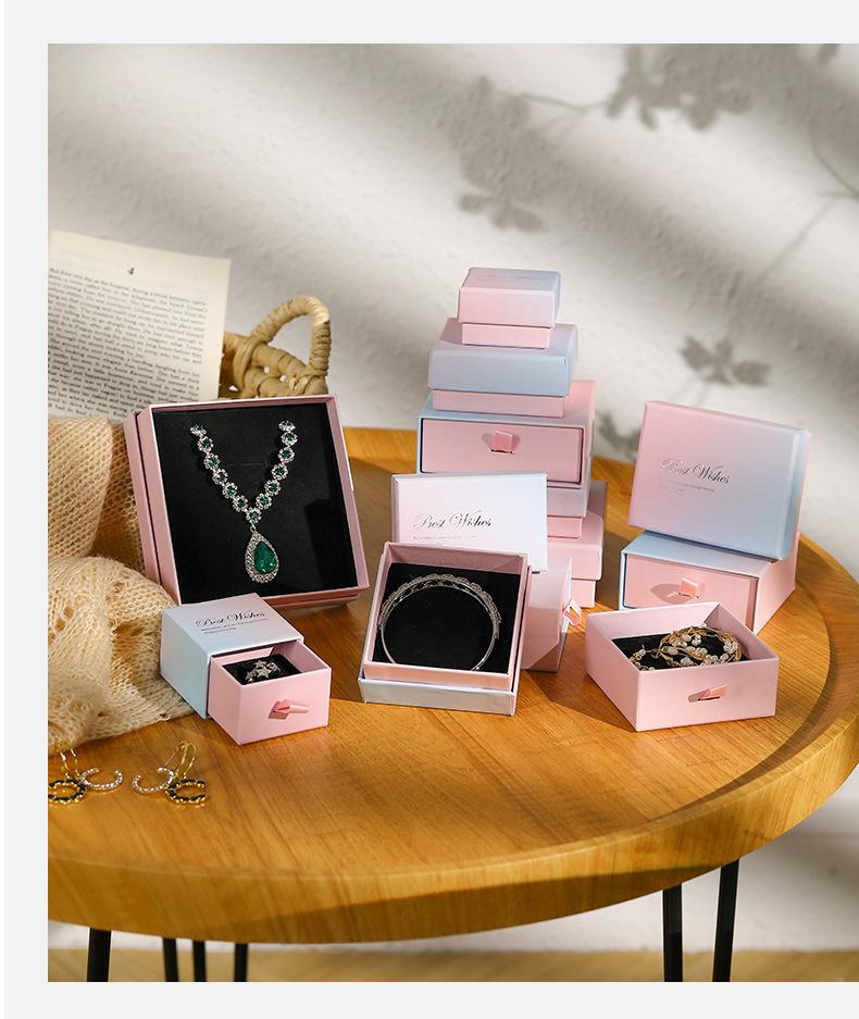 Caja de almacenamiento de joyas al por mayor en stock, caja para anillos, pendientes, collares, cajones, pulseras, embalaje de joyas.