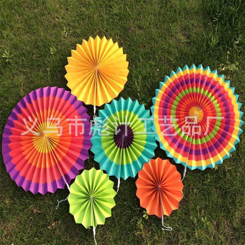 【Nombre del producto】: Juego de 6 abanicos de flores de papel combinados