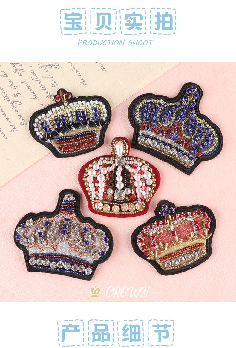 Etiqueta bordada por computadora, insignia de corona con cuentas hecha a mano, etiqueta bordada, accesorios de ropa, pegatinas de parche de decoración para abrigos y sombreros, pegatinas de tela bordadas