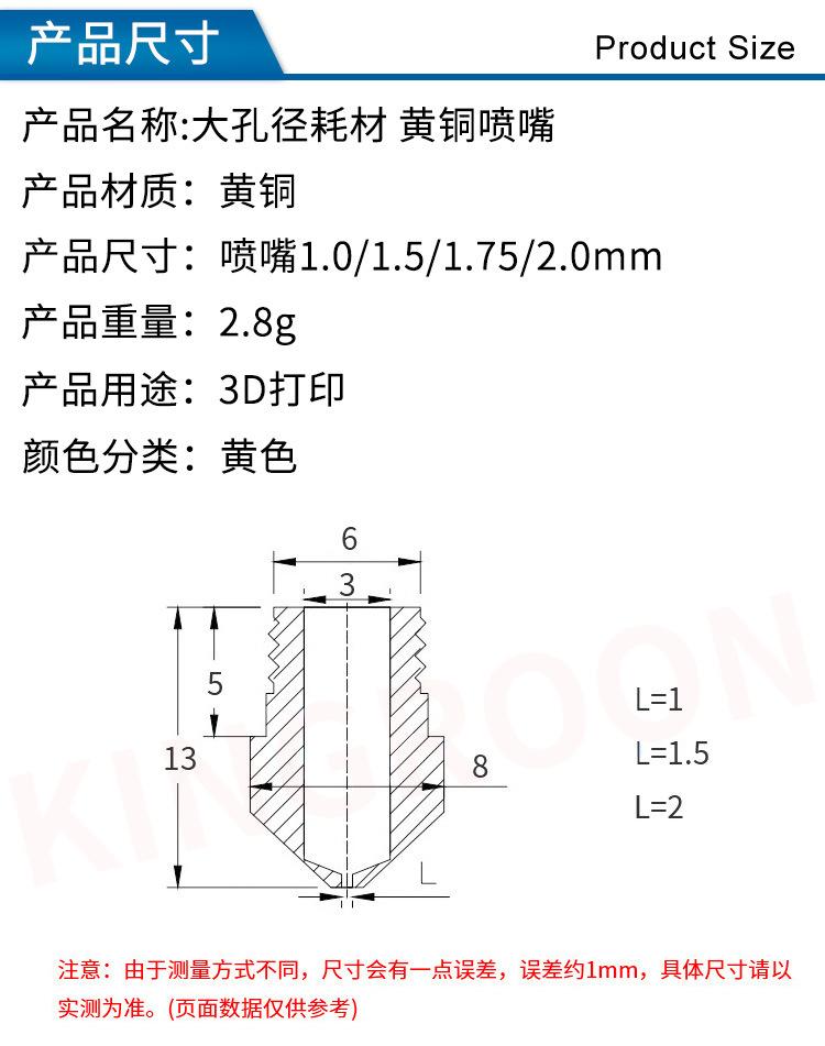 Accesorios para impresora 3D, boquilla consumible de latón, de gran diámetro y gran apertura (1 mm, 1,5 mm, 2 mm o 3 mm).