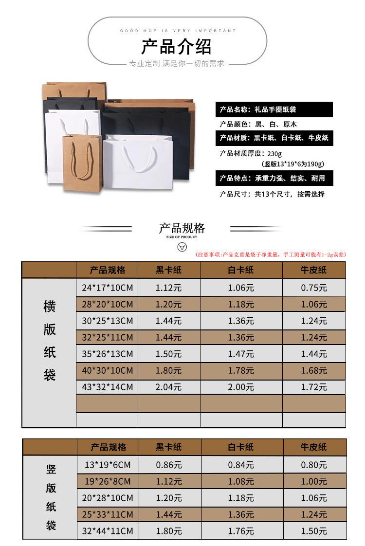 Bolsa de papel kraft personalizada, embalaje portátil, bolsa de regalo, bolsa de tienda de ropa personalizada, bolsa de compras promocional para centro comercial, tarjeta en blanco y negro