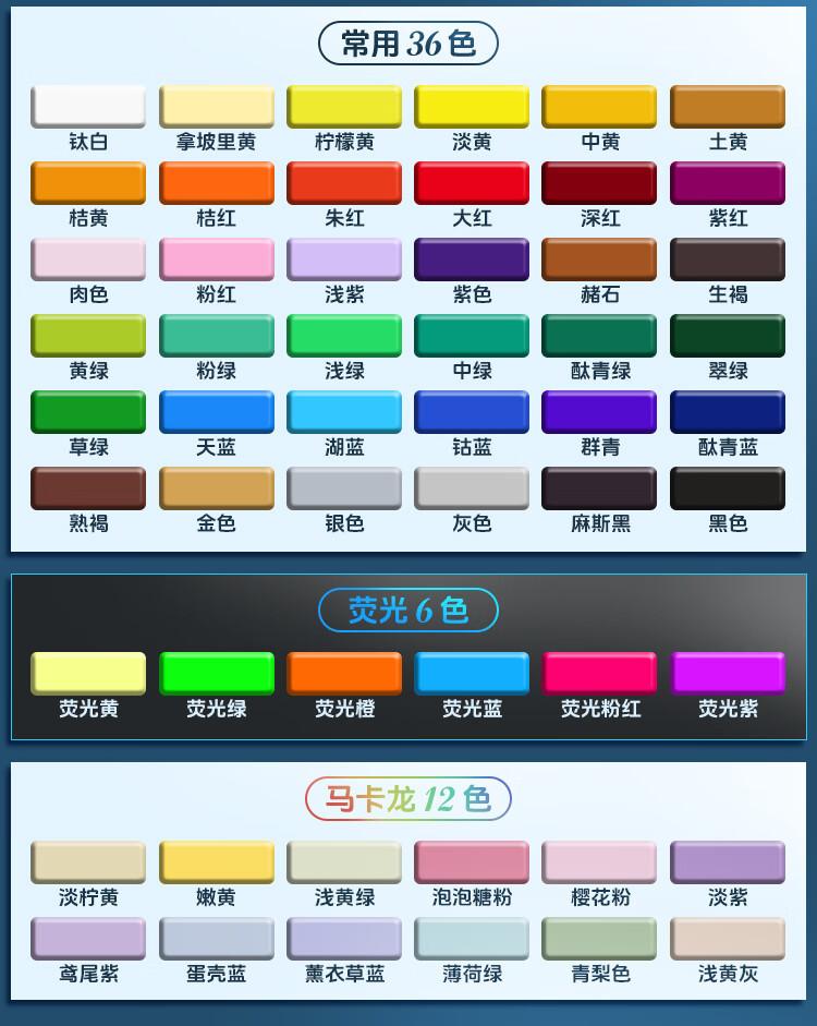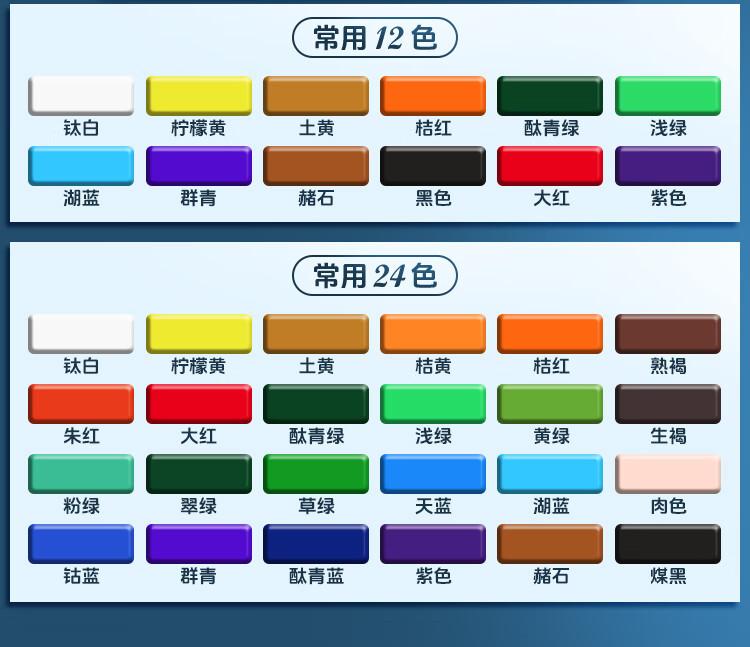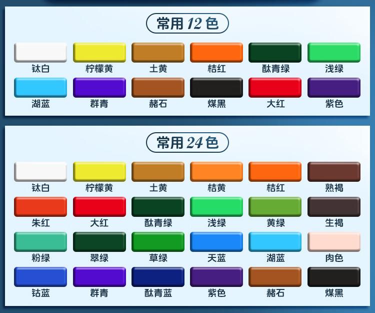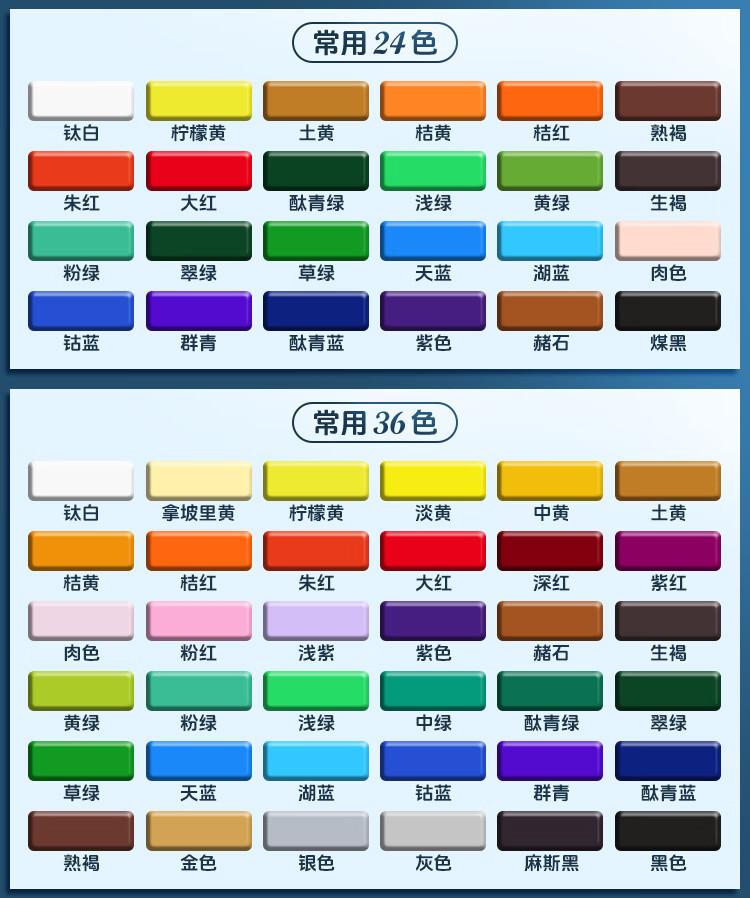 Titanium white, Chinese white, Napoli yellow, Original titanium color, Light yellow, Lemon yellow, Medium yell...
