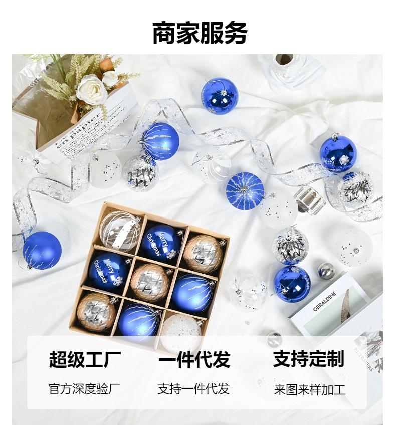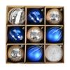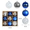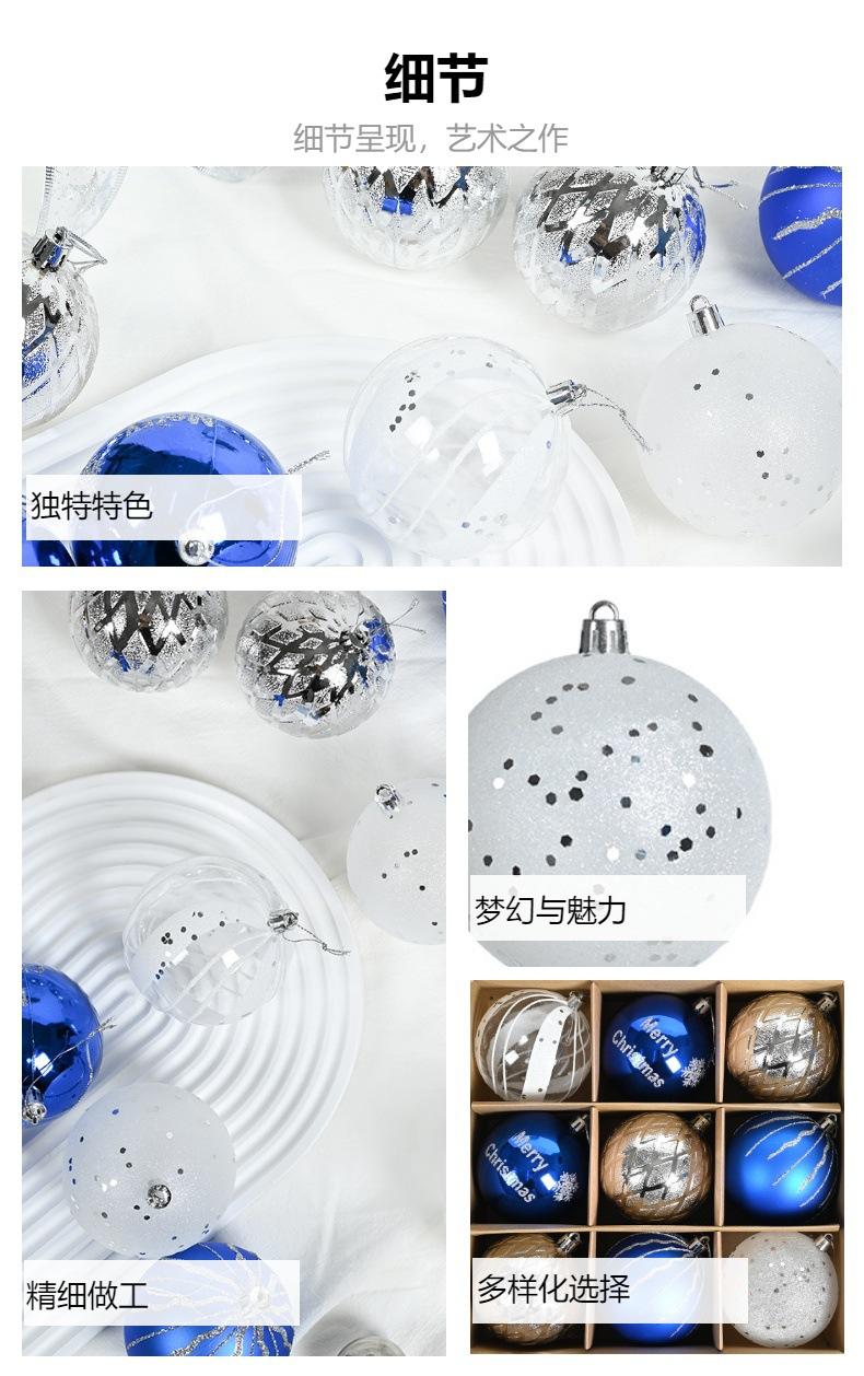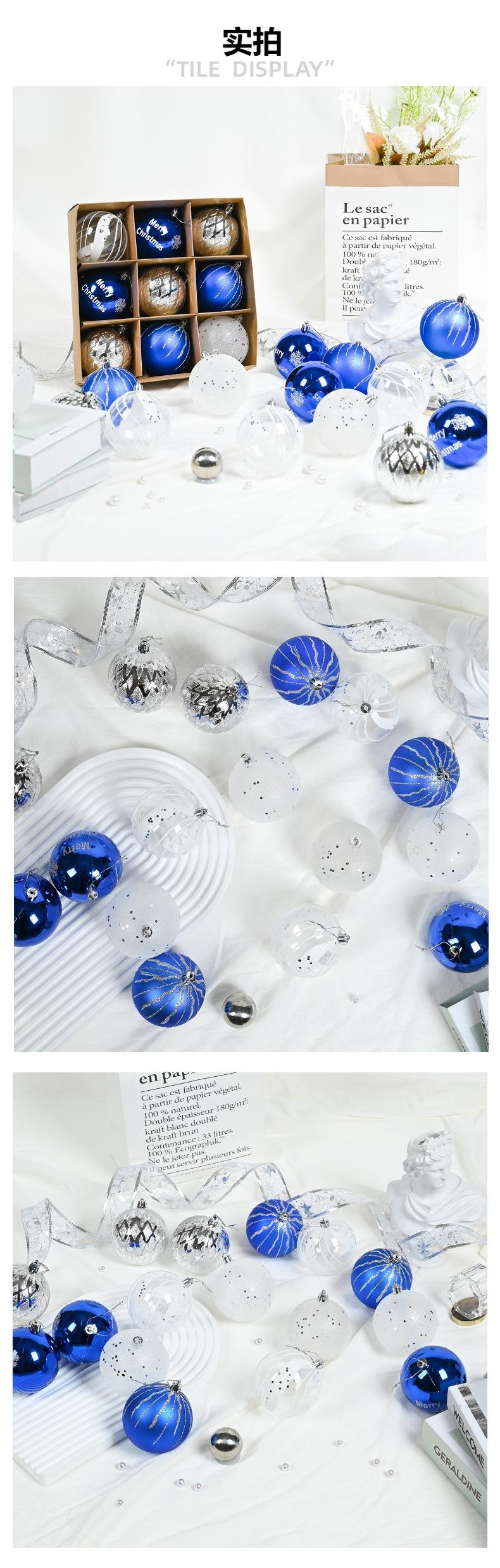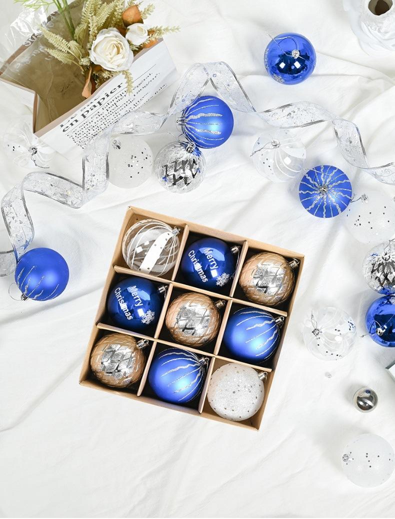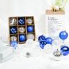 Adornos navideños de 8 cm, bola de árbol de Navidad de plástico azul y blanco pintada a mano y galvanizada, colgante para fiesta, bola de Navidad