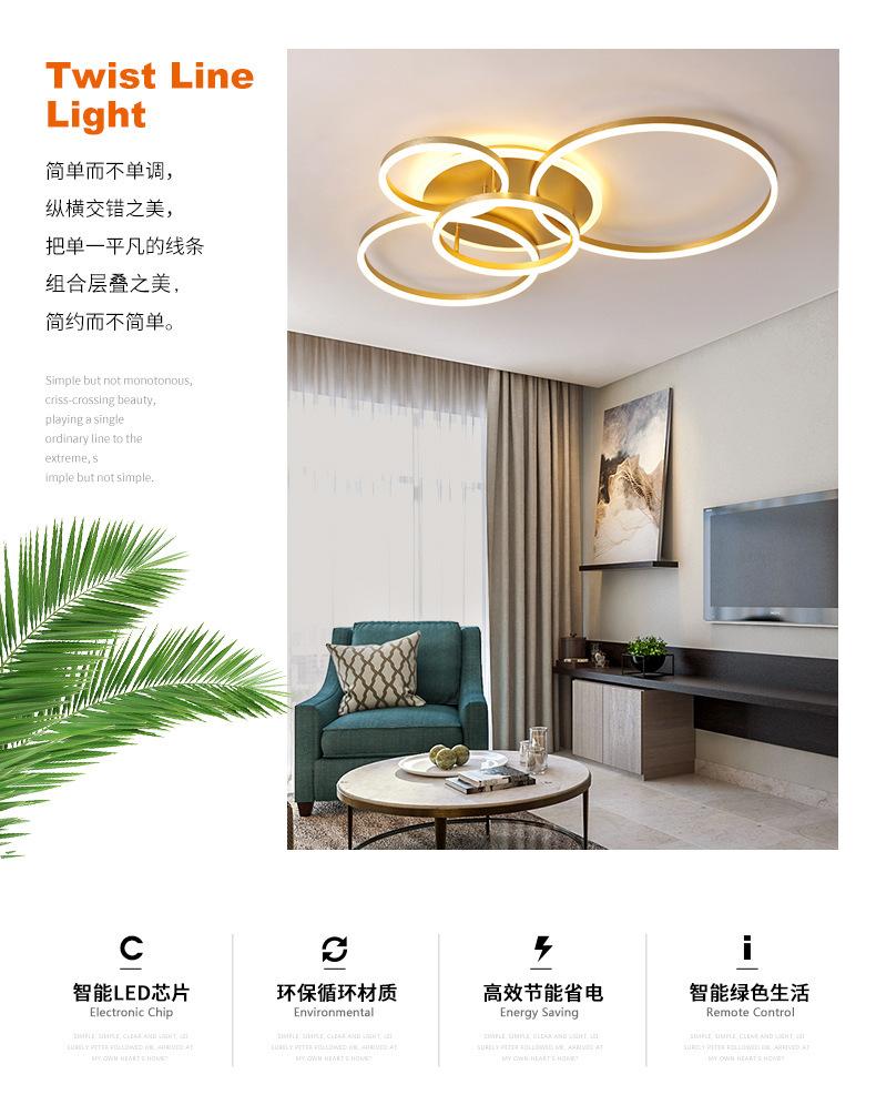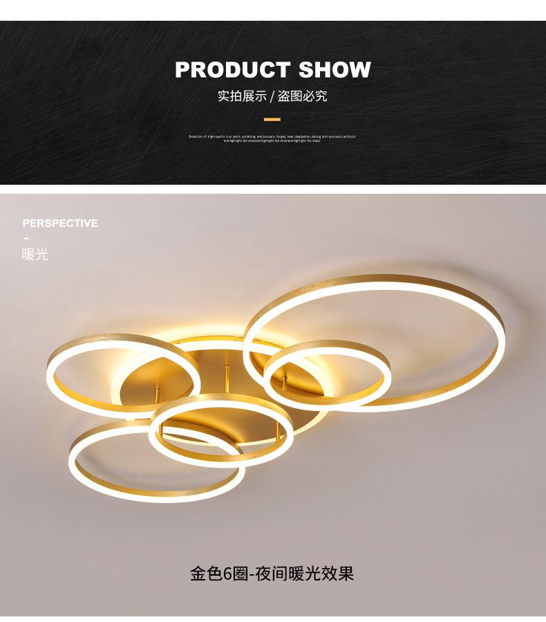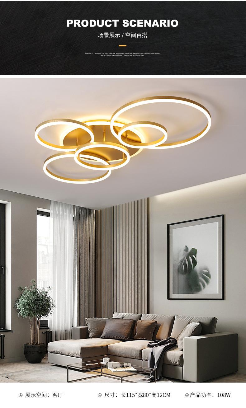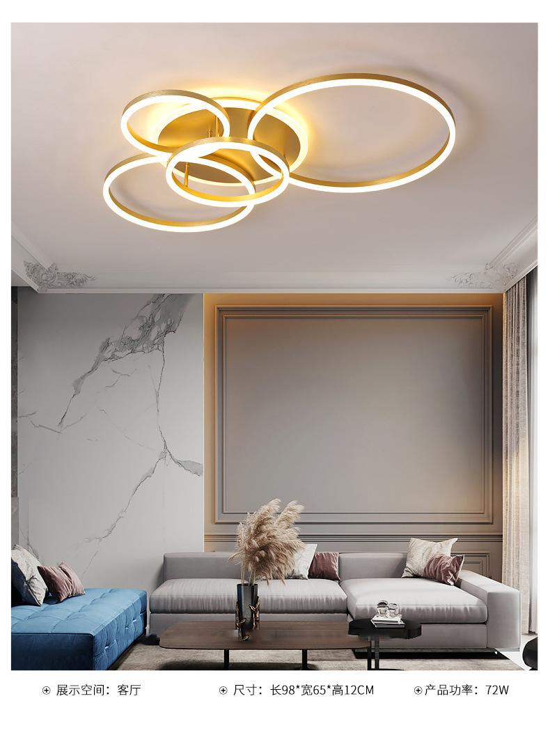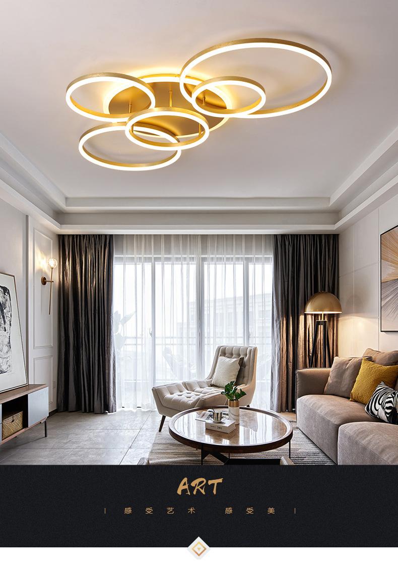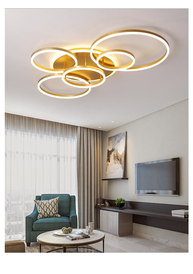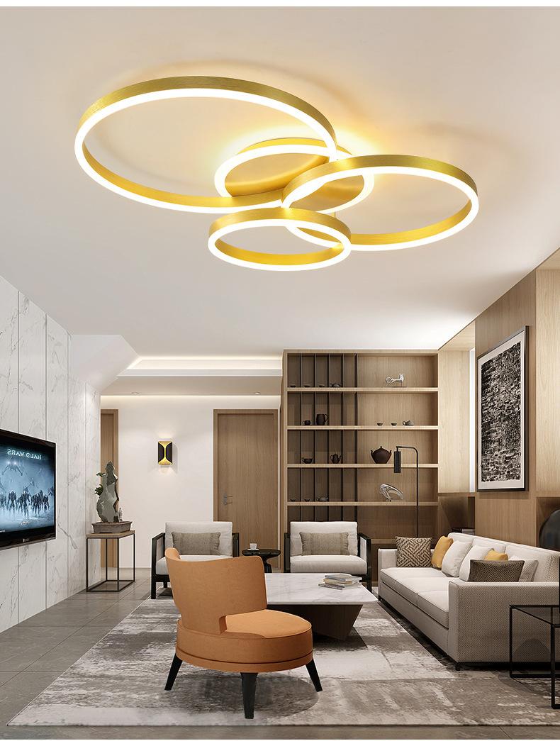 Lámpara de techo LED 2021, nueva lámpara de sala de estar, lámparas de anillo dorado posmodernas, iluminación sencilla para el dormitorio del hogar