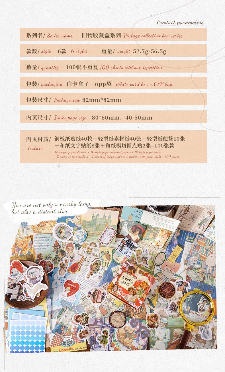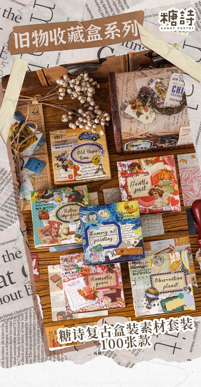 Pegatinas en caja con poemas de azúcar, colección antigua, serie de cajas, base de cuenta manual retro, material de collage, traje de papel 6