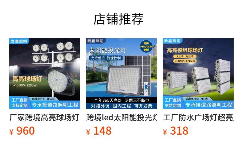 Foco LED de 100W300W200 vatios de suministro directo de fábrica Iluminación exterior Luz fuerte Foco impermeable Lámpara solar